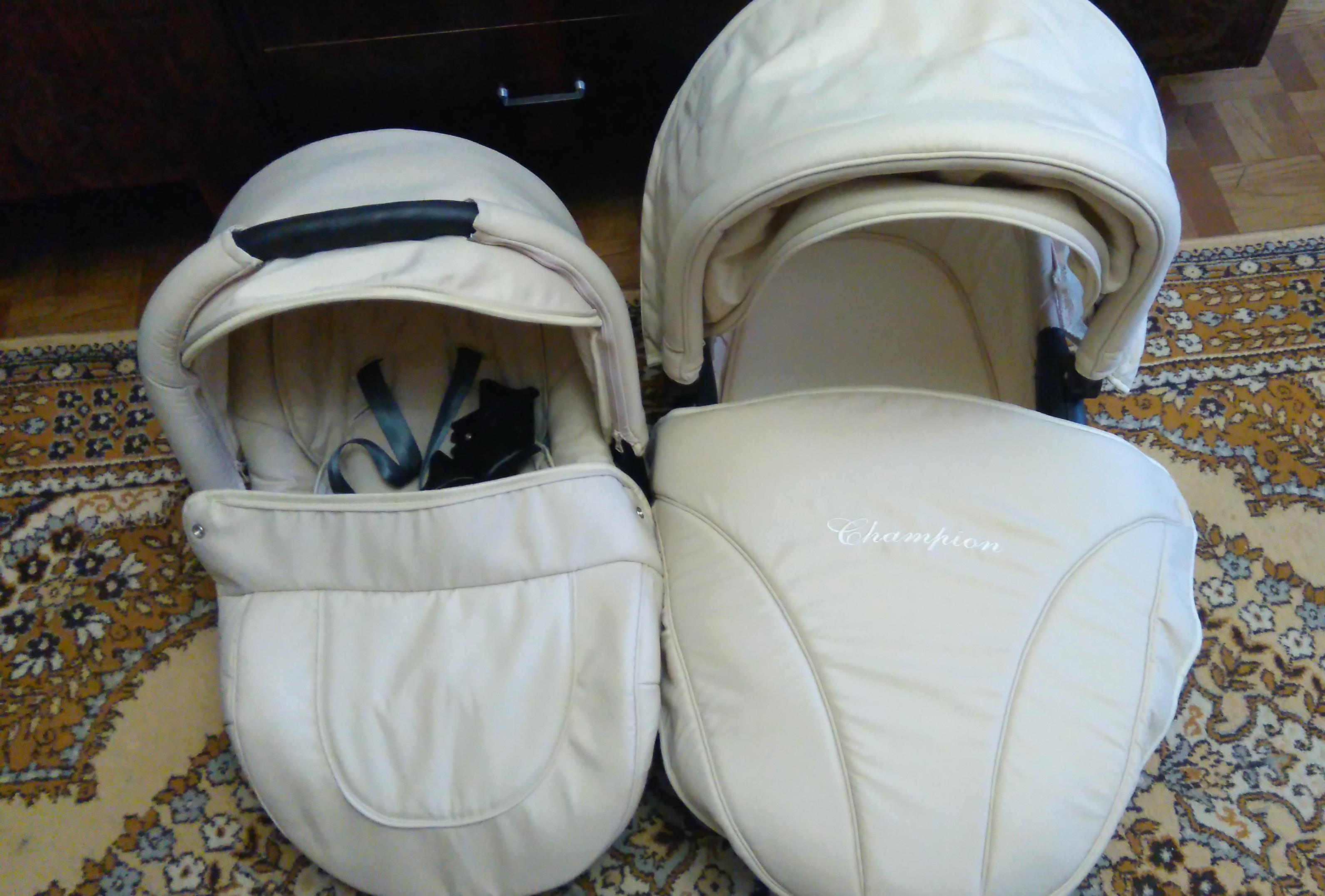 Продается коляска Adamex Champion 3 в 1 цвет бежевый (подойдет как для мальчика так и для девочки), практически новая! с полным комплектом (шасси, люлька, автокресло, прогулочный блок, противомоскитная сетка, солнцезащитный козырек, дождевик, сумка), использовалась полгода (покупалась новая, использовалась одним ребенком). Характеристики: - коляска универсальная (3 в 1) - автокресло в комплекте - механизм "книжка" - 4 колеса - нагрузка до 15 кг - возможность установки люльки - возможность установки прогулочного блока - установка на шасси автокресла - пятиточечные ремни безопасности Цена 18000, Кировский район