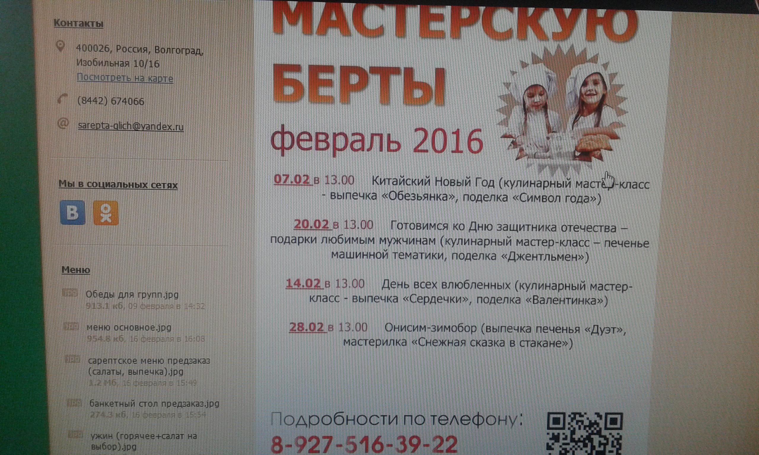 Чтобы не множить тем в кафе "Гличь" в Красноармейском р-не мастер-классы на февраль. Мы завтра идём:)