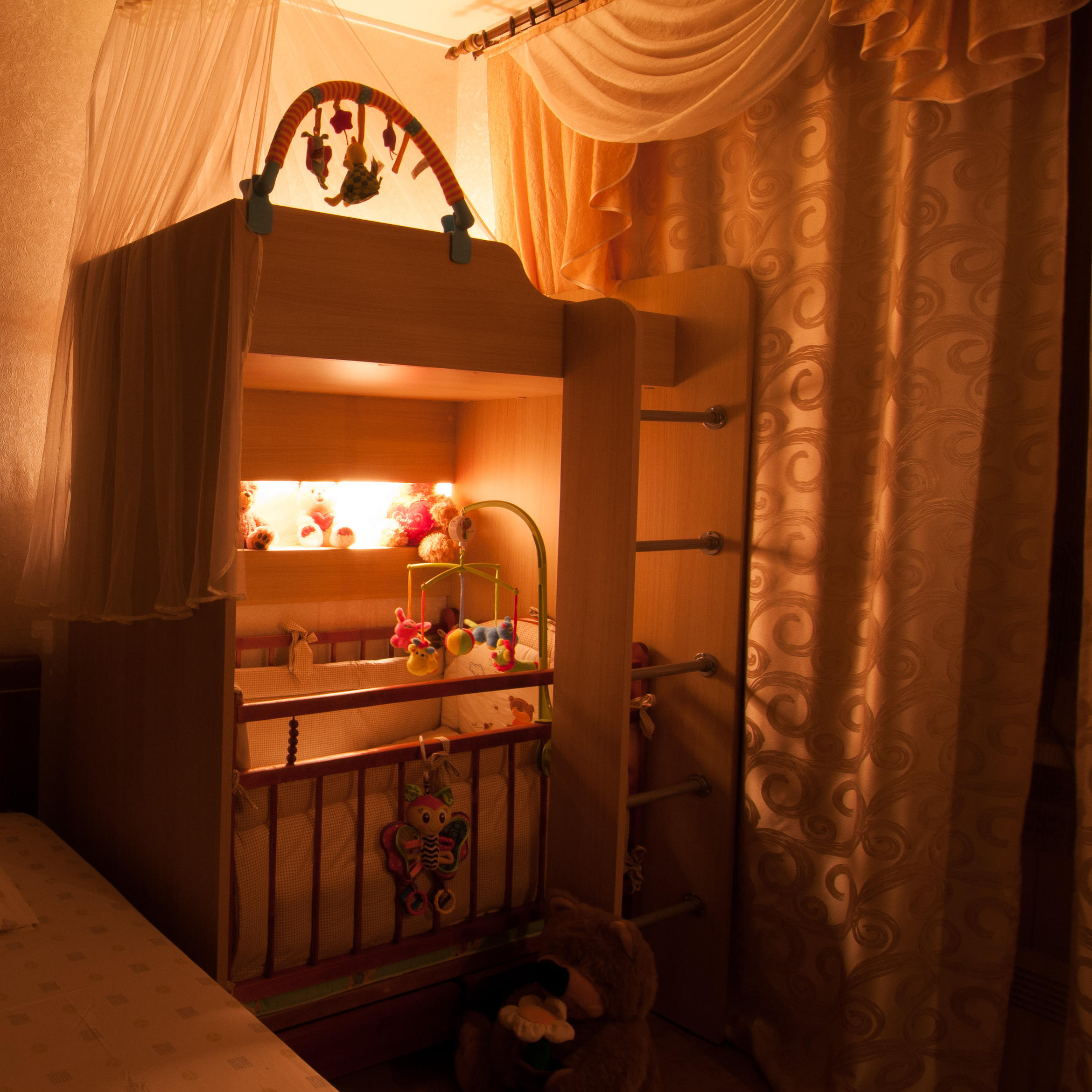 Компактная кровать для одного или двоих детей двухярусная. Изготовлена под заказ по индивидуальным размерам. Для исключения опрокидывания предусмотрено крепление к стене. Внизу свободно размещена стандартная детская кроватка. Может быть заменена диваном, столом и т.п. Спальное место сделано под стандартный размер матраса 120х60х12(14). Матрасы ортопедические. Наполнитель кокос. Сразу были застелены клеенками, чистые. Цены: - кровать основная (верхняя): 20 000 р. - кровать нижняя: 2 000 р. - матрас: 500 р/шт. +7 927 526 5три 9три