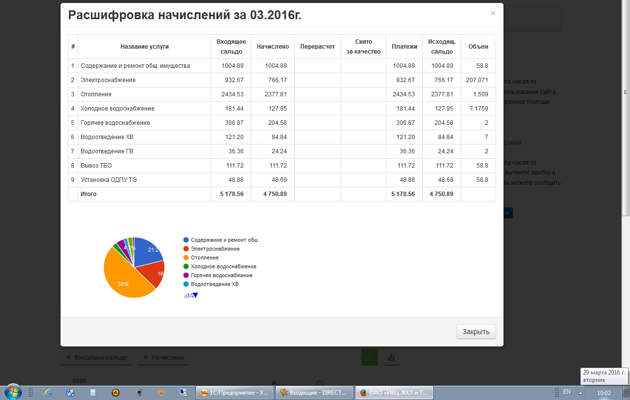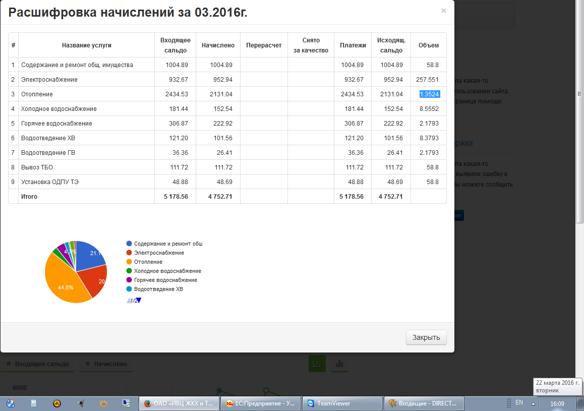 Хочу обратить Ваше внимание, чтобы при переходе по оплате на ИВЦ " ЖКХ и ТЭК" Вы (форумчане) тщательно проверяли расчетные формулы и исходные данные: площадь жилых помещений, нежилых, ( МОП)-места общего пользования. Особенно это касается, если Вам начисляют плату за отопление по счетчику общедомовому. При расчете за февраль 2016г, почему-то, из формулы, из знаменателя странным образом исчезла площадь нежилых помещений. А это 460,3 кв м. И, соответственно, плата увеличилась рублей на 100 за месяц с двухкомнатной 44,8 кв м. А что нормально: получить беспроцентную ссуду на несколько месяцев. Я надеюсь, что это всё вернется ( пытаюсь с этим разобраться).