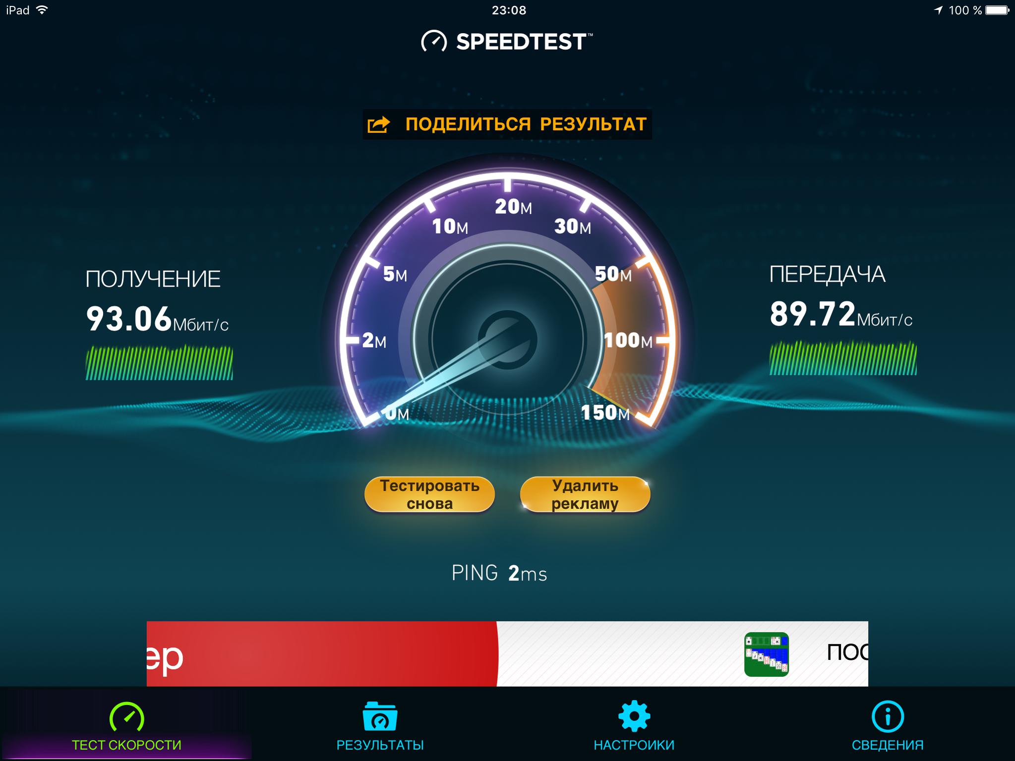 Подключили сегодня за 801 рубль. Скорость сейчас мерила - 90 Мбит. Печаль только, что теперь нет Парамаунт Камеди в телевизоре. Заявку подавала вчера поздно вечером. В 10 утра позвонили, в 11 сходила в офис, подписала допсоглашение и сразу все подключили. Правда телек сначала не смогли, через техподдержку доделывали. Радует, что теперь оплата 9 числа каждого месяца, а не раз в 30 дней. Экономия аж 700 рублей теперь на связи и прочем.