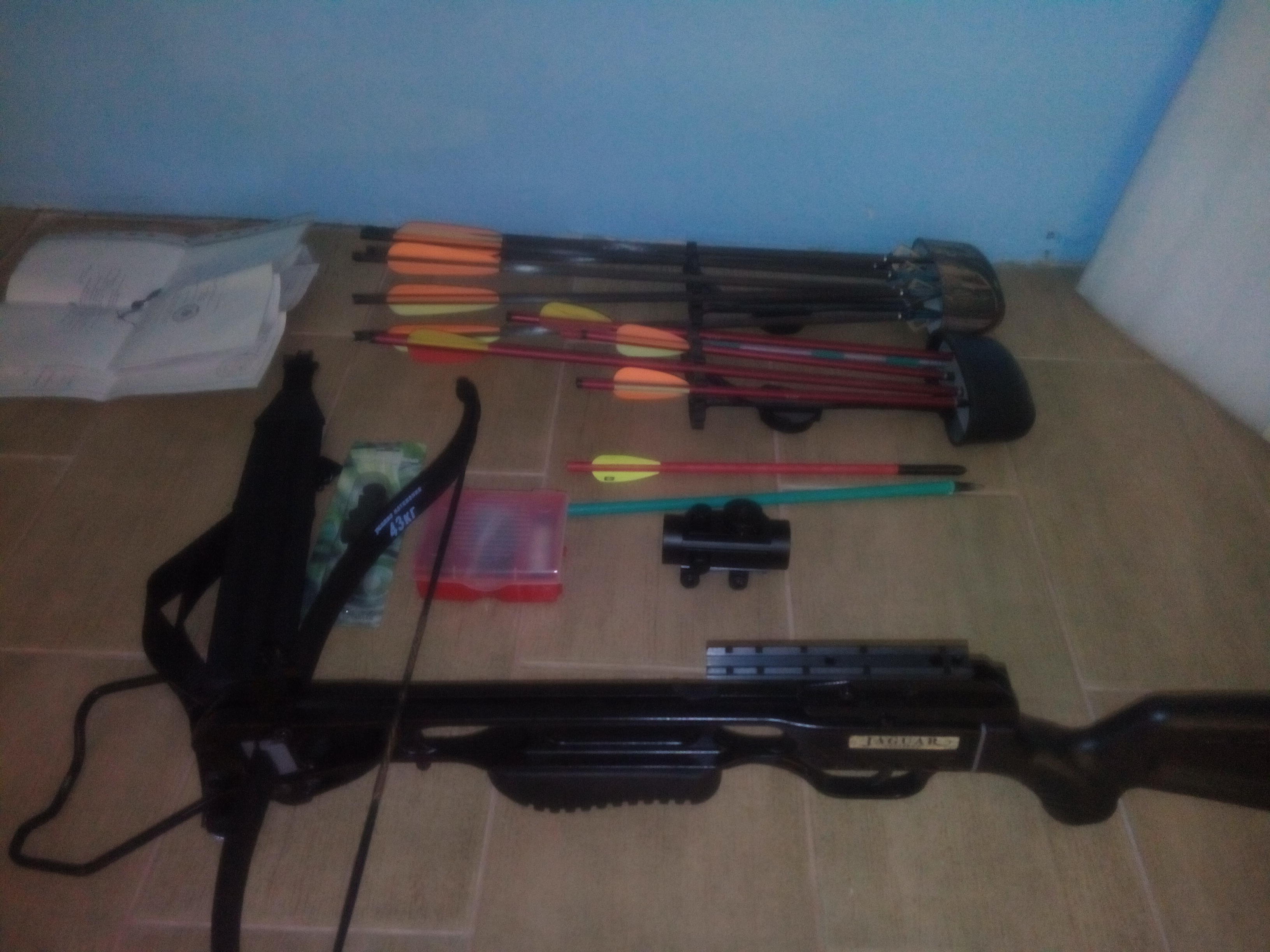 Лежит пылится у меня арбалет, выезжал пострелять пару раз, лежит пару лет без дела времени нету даже поехать подышать порохом. 1)Арбалет рекурсивный винтовочного типа Скорпион ПРО (Jaguar PKG) В полной комплектации (арбалет+стрелы алюминиевые (покупал разные не которыми не пользовался)+кивер+ ремень с антабками+колиматорный прицел) в хорошем сотоянии. (в 640 стоит без всего 9300р) http://dicmarket.ru/ohota_ribalka/scorpion_pro_jaguar_pkg 2) Кивер (дополнительный, в нём хранятся карбоновые стрелы) новый, только смотрел на него. http://www.arbalet.ru/kivery-dlya-arbaletov/interloper-kiver-dlya-luka 3) Стрелы карбоновые 6 шт новые, только смотрел на них http://robinbow.ru/streli-arrows/bolt-carbon-20 4) Охотничьи стальные наконечники для стрел 6шт (3 шт 3 лезвия покупал тут , 3шт 4 лезвия покупал в Англии) новые, только смотрел на них примерно как по ссылке только другой фирмы покупал давно и дороже http://www.4arbalet.ru/produkcija/arbalety/nakonechnik-dlja-okhoty-BroadHead-92-gran-3-sht./ 5) Тетива для арбалета 1шт новая в упаковке запечатаная http://robinbow.ru/internet-magazin/aksessuari/tetiva-dla-arbaleta-mk-150-skorpion Реальные фото сделаю позже так как он храниться в другой (отапливаемой квартире в разобраном состоянии) Все вместе новое получается около 20тр Отдам за 10 т р