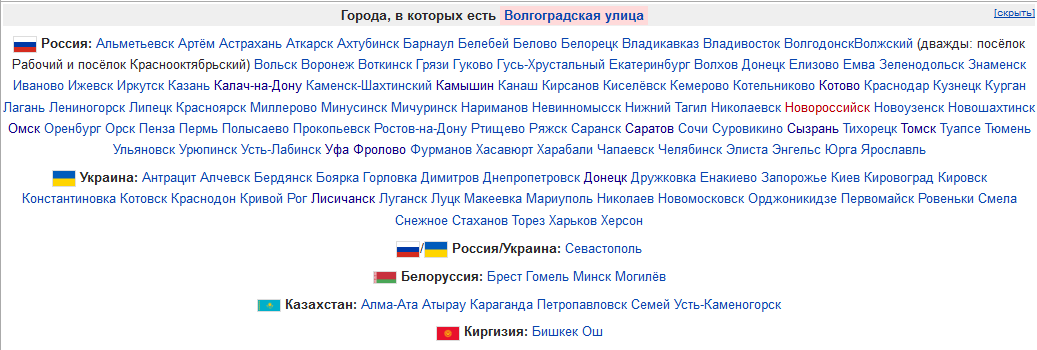 я лично больше чем уверен, что в риге, варшаве или радоме- нету Волгоградской улицы. а вот ненависти ко всему Российскому, неотъемлемой частью которого является всё Волгоградское,- тама пруд пруди. и я считаю, что ничего нормального в етом нет, чтоб называть улицы своих городов в честь русофобских территорий. ещё в честь вашингтонского обкома улицу назови. хотя ты лично несомненно будешь рад такому названию.
