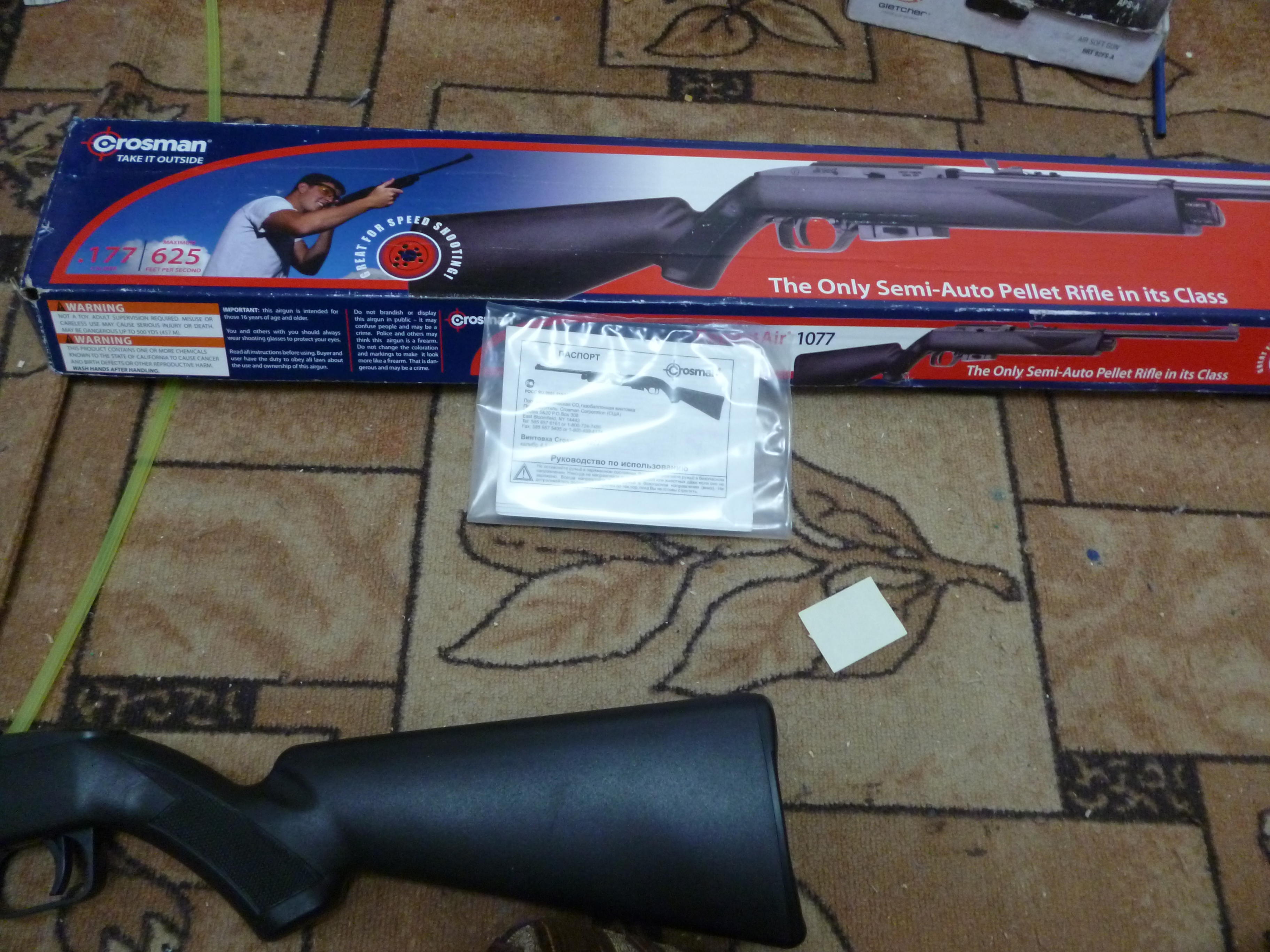 Продам пневматическую винтовку производства США Crosman 1077, в идеальном состоянии в коробке. Культовая винтовка с малым весом и большой мощностью выстрела, магазин на 12 свинцовых пуль калибра 4,5мм. На мушке зеленая нить, облегчающая прицеливание. Характеристики винтовки: Калибр, мм: 4,5 мм Скорость выстрела, м/с: 190 м/с Емкость магазина: 12 пуль Вес (кг): 1.68 кг Размер: 937 мм Источник энергии: Баллон 12 гр CO2 Тип пуль: Свинцовые пули 4,5 мм Тип магазина: Барабан Мощность: <7,5 Дж Отлично подходит как для обучающей стрельбы, так и для продвинутых стрелков. Вместе с винтовкой подарю отдельно приобретенный за 400 рублей запасной барабан + 20 фирменных баллончиков CO2 Crosman. Цена 6000 рублей за всё. Район Краснооктябрьский.
