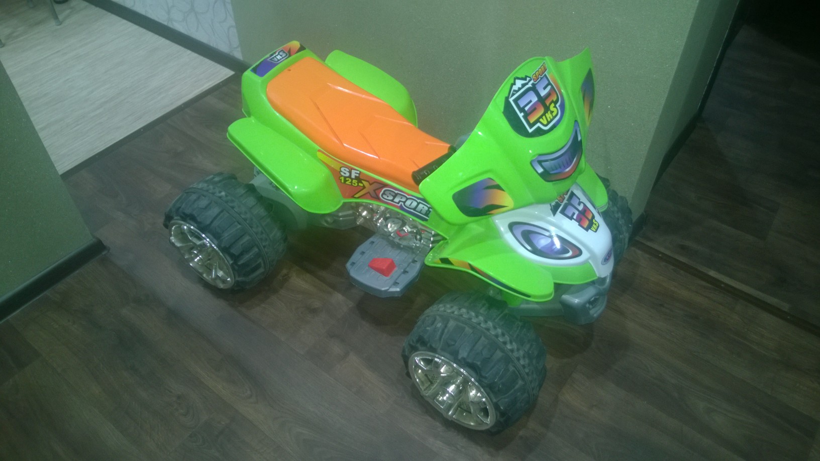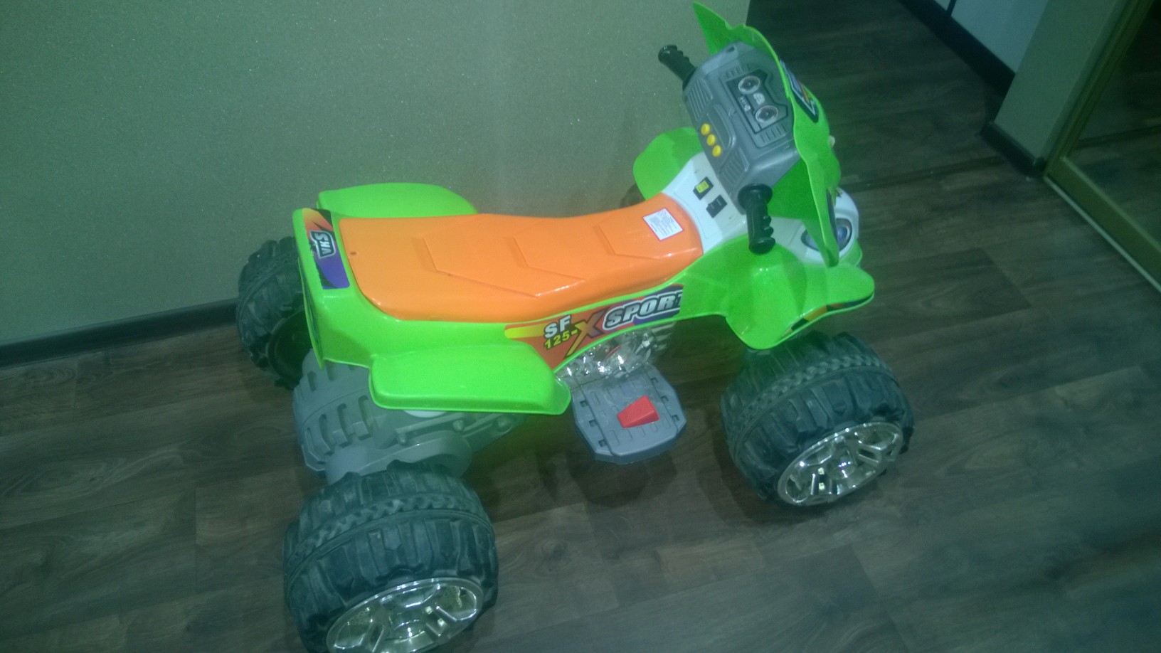 Продается за ненадобностью. Купили и все время простоял. Один раз брали на турбазу, покатались дети пару часов и все. Функциональные особенности: - Предназначен для детей от 3 до 8 лет - Одно удлиненное посадочное место - Максимальная нагрузка 40 кг - Большая проходимость и возможность езды по любой поверхности (асфальт, песок, трава, гравий, земля), легко преодолевает подъем с уклоном до 17% - Может двигаться вперед, назад и поворачивать направо и налево - Коробка с тремя передачами: две передние (скорость на первой передаче - 4 км/ч, на второй - 8 км/ч) и одна задняя (скорость - 4 км/ч) Технические характеристики: - Двухрежимный двигатель: 2х25W - Две аккумуляторные батареи по 6V 12Ah, время перезарядки - 10 часов, время работы батареи 2-2,5 часа - Большие пластиковые колеса с резиновыми накладками - Руль оснащен защитой для рук - Движется при нажатии на ножную педаль - Акселератор и тормоз совмещены в одной педали - На приборной доске есть переключатель пониженной/повышенной передачи, а также переключатель движения вперед/назад