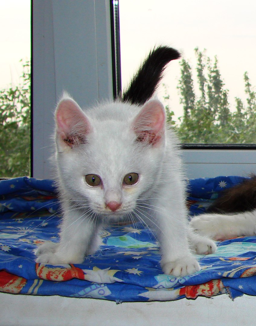 Забавный малыш с редком окрасом ищет дом! Котеночек весь беленький, только хвостик черный. Возраст примерно 2 месяца. Игривый, как и все детки. Доставит вам много радостных моментов и, гарантирую, будет бесконечным источником веселья. Лоточек знает, кушает влажный корм для котят. Подробности по телефону 8-906-167-96-59 Надежда Возможна доставка в Волгоград. Возможно взять на испытательный срок.