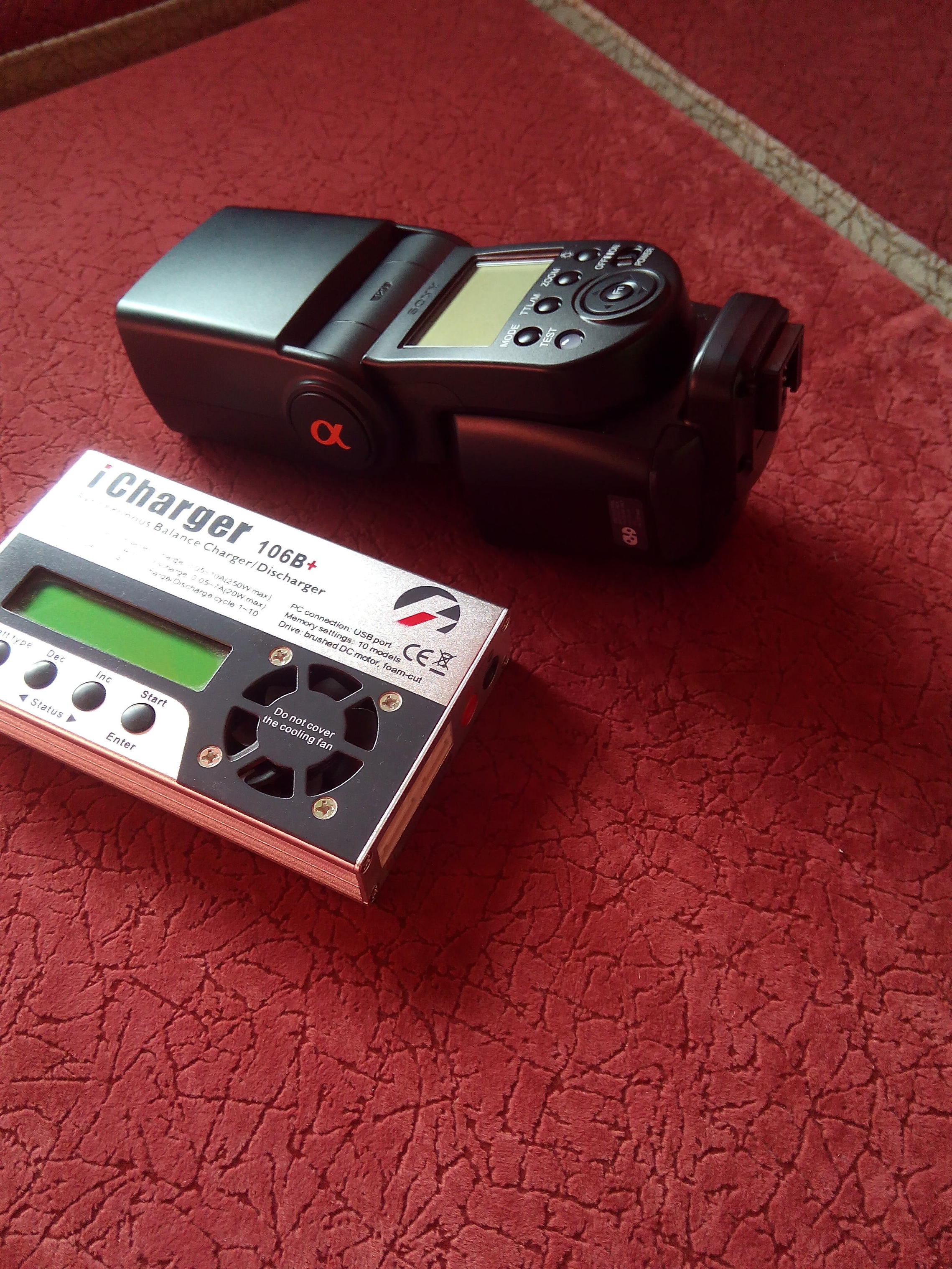 А вот хоббийная зарядка рядом с вспышкой. В карман легко войдёт. Аймакс б6 мини ещё меньше. Снял на планшет, камеру не стал доставать.