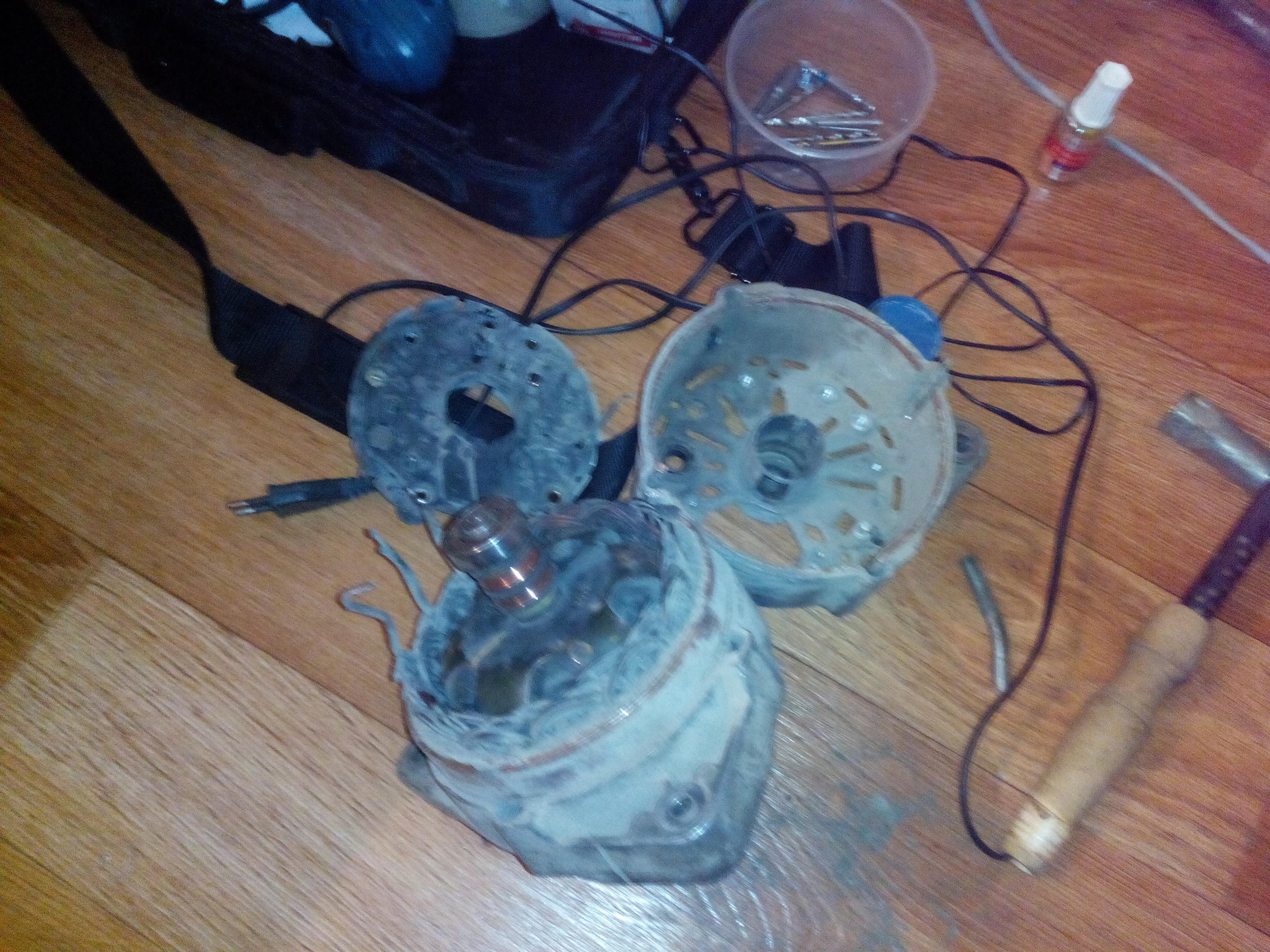 Кто поможет с генератором? Привет - снял гену разобрал провод один отлетел от моста - короче разобрал полностью - но не хватает паяльника запаять нормально (еще +2 отлетели). Суть такова - привезу святые мощи запаять и собрать всё в зад. Гена ауди 100 с4 двиг аар - гена бошь.... - выручайте (таблетка новая, щётки) Проблема возникла из за недозаряда - отдавал около 12 вольт (11.8 11.9) один провод с статора реально отлетел - дальше хуже. И по цене сориентируйте плиз. фото ниже всего этого безобразия