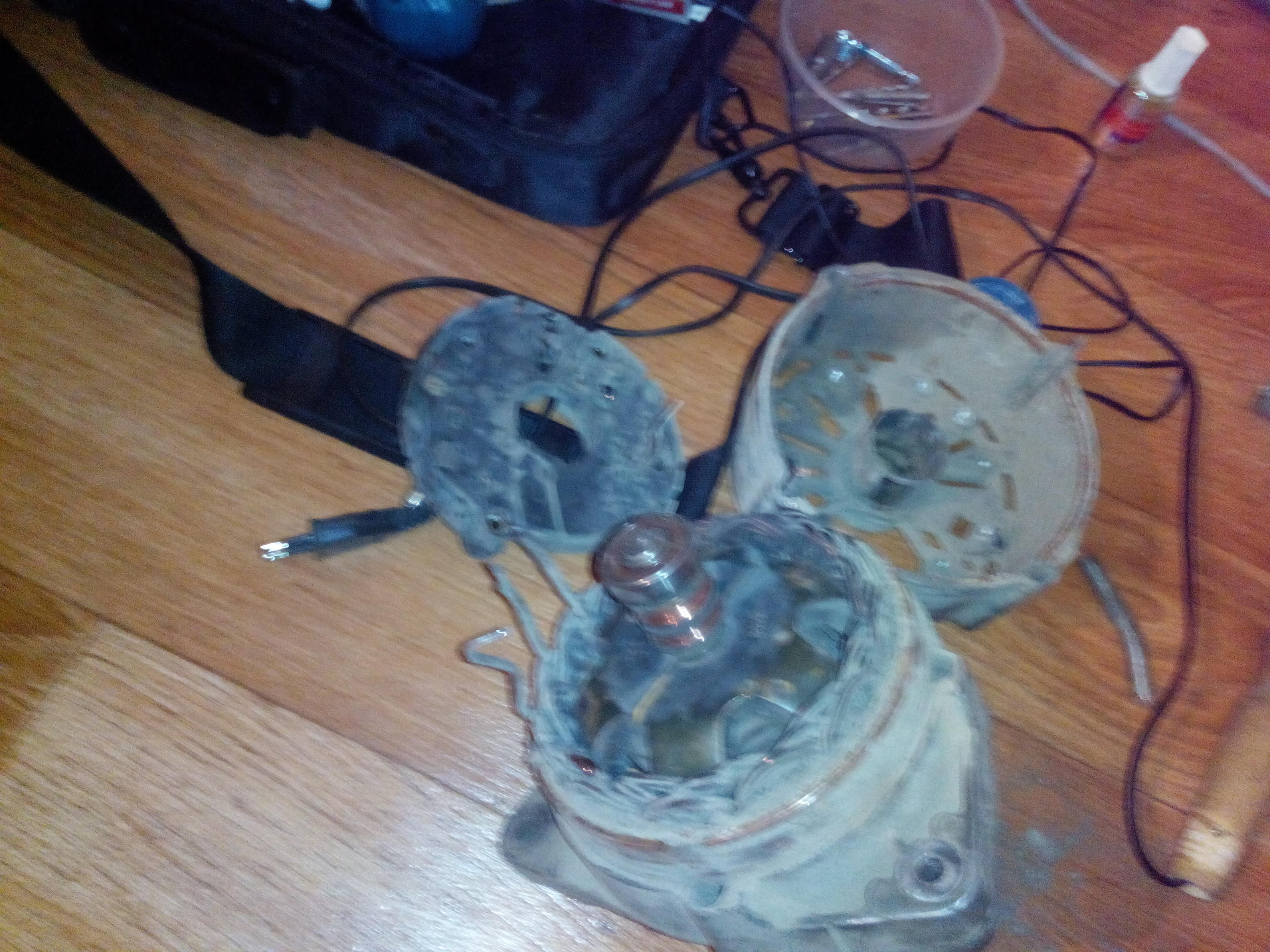Да там, судя по разрушениям и паяльнику в углу картины, товарищ сам пытался разобрать агрегат и пообламывал обжимные контакты моста к статорной обмотке, а теперь ищет дурачка, который самадёшево и с гарантией всё это обратно закалапуцает. На авиаторов ехать бессмысленно, там Лёха с Диманом сразу скажут - мост под замену, а это денег стоит.