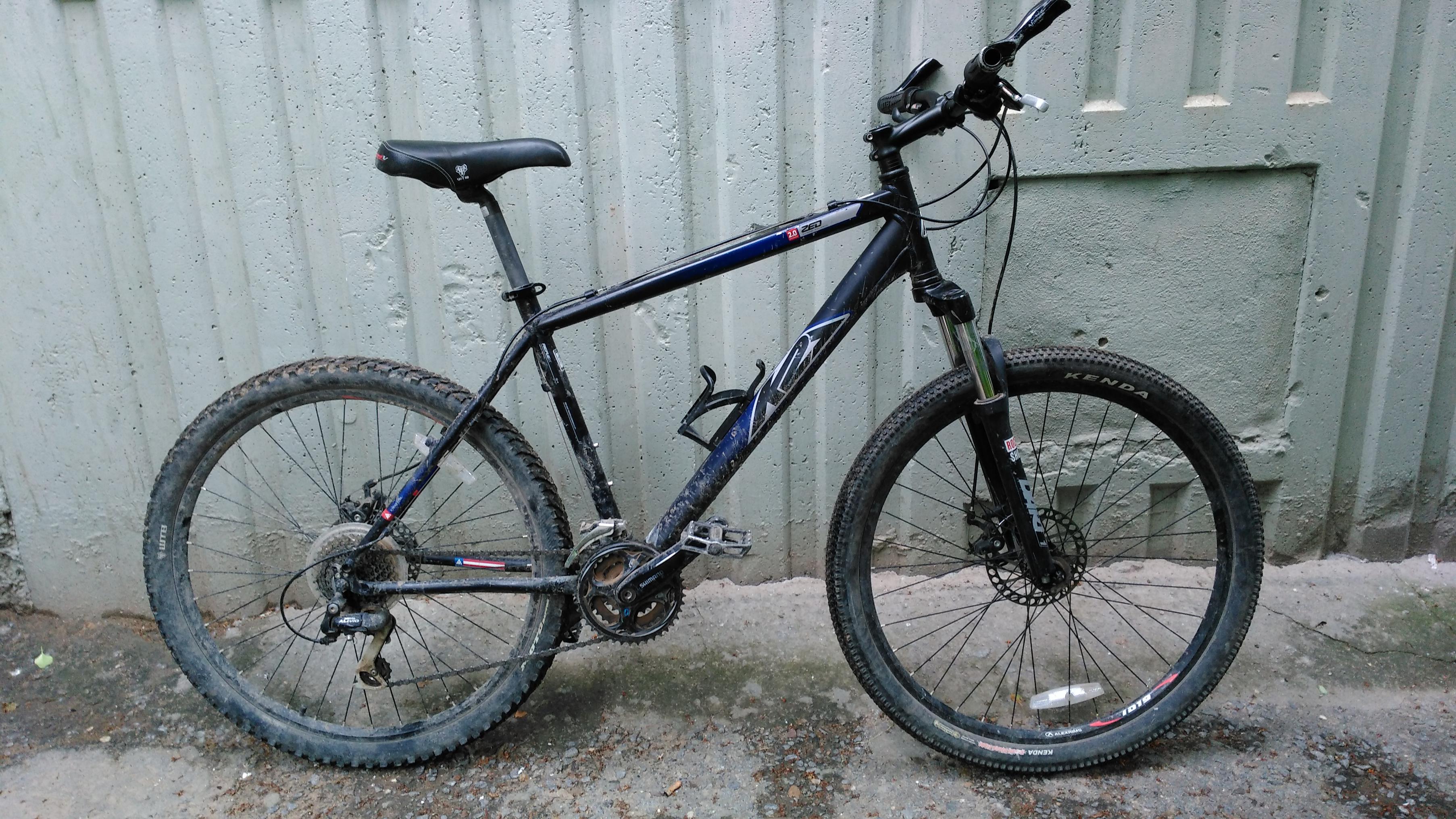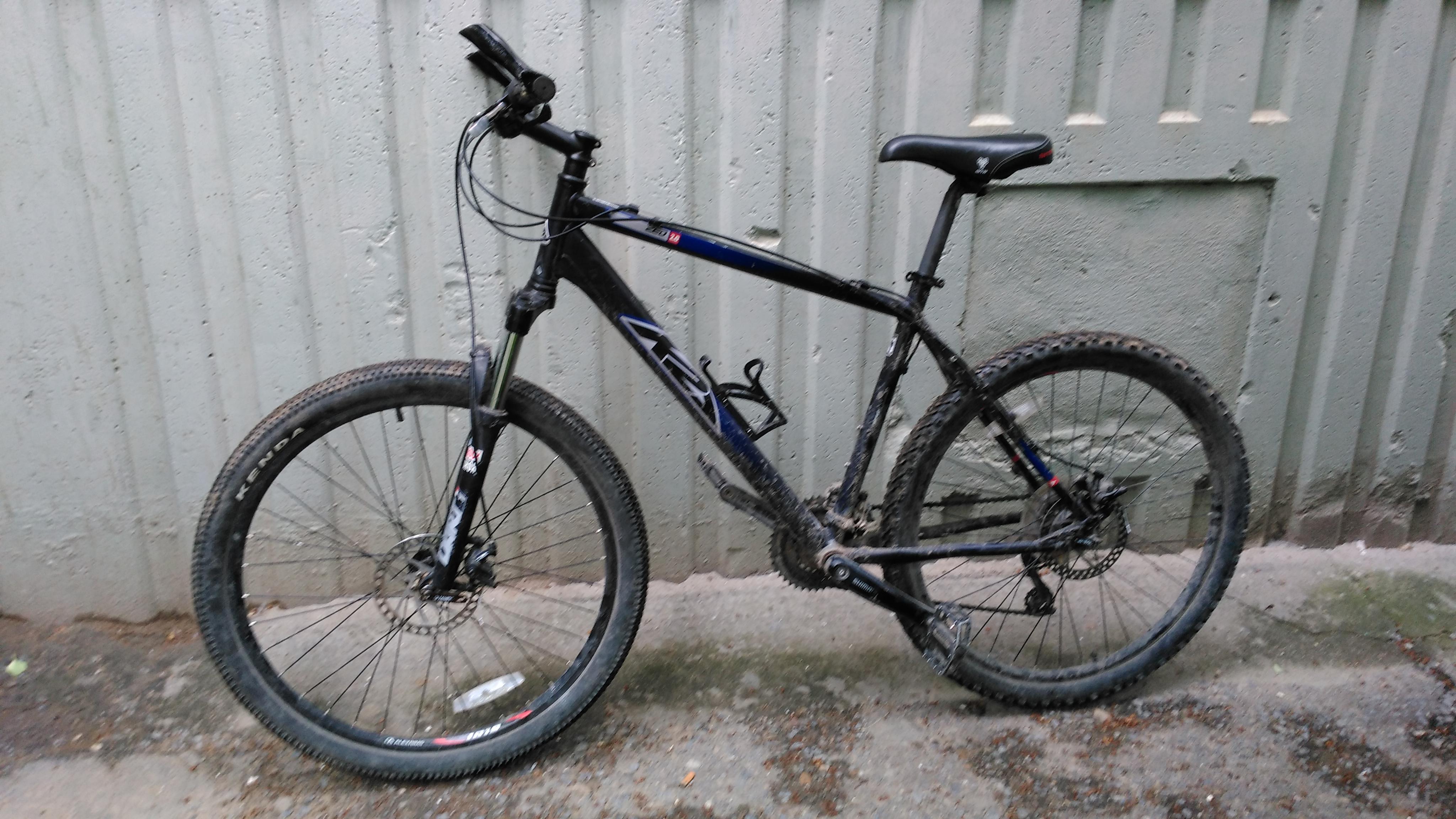 Фото к сожалению нет. Тёмно синий, почти чёрный, с чёрными рожками на руле. Выглядел очень мрачно и всё время был в грязи. Да, резина на колёсах ещё была разная, перед kenda в мелкий кубик, зад WTB ёлочкой.