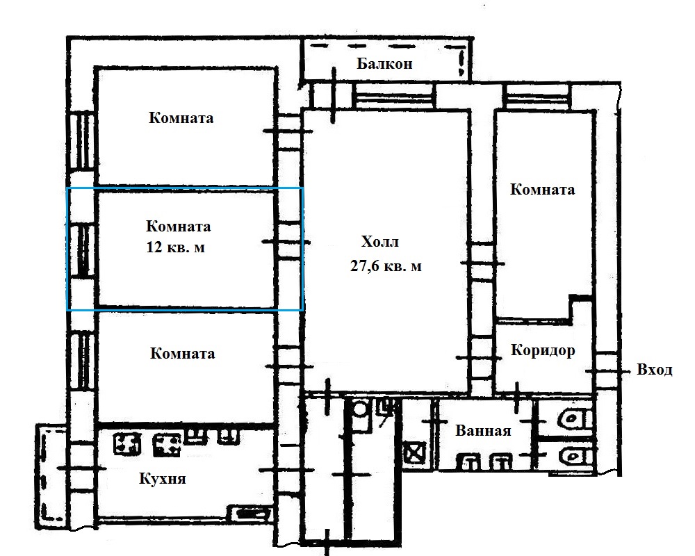Интересная планировка... Вероятно планировщики представляли этот огромный холл (размером почти в 3 комнаты) как некое общее пространство, где все жильцы блока будут собираться, общаться, тусить, смотреть ТВ, устраивать банкеты. Но советская идея общественной жизни оказалась провальной и теперь видимо этот холл помойка которую хочется побыстрее пройти. Наверно если собрать всё это в одну квартиру будет неплохо) А так конечно цены на общаги жесть, за эти 700тр можно снимать хорошую квартиру-однушку тысяч за 12 в месяц лет 20-25 (при условии что положил эти 700 в банк под % и частично забираешь каждый месяц на аренду)
