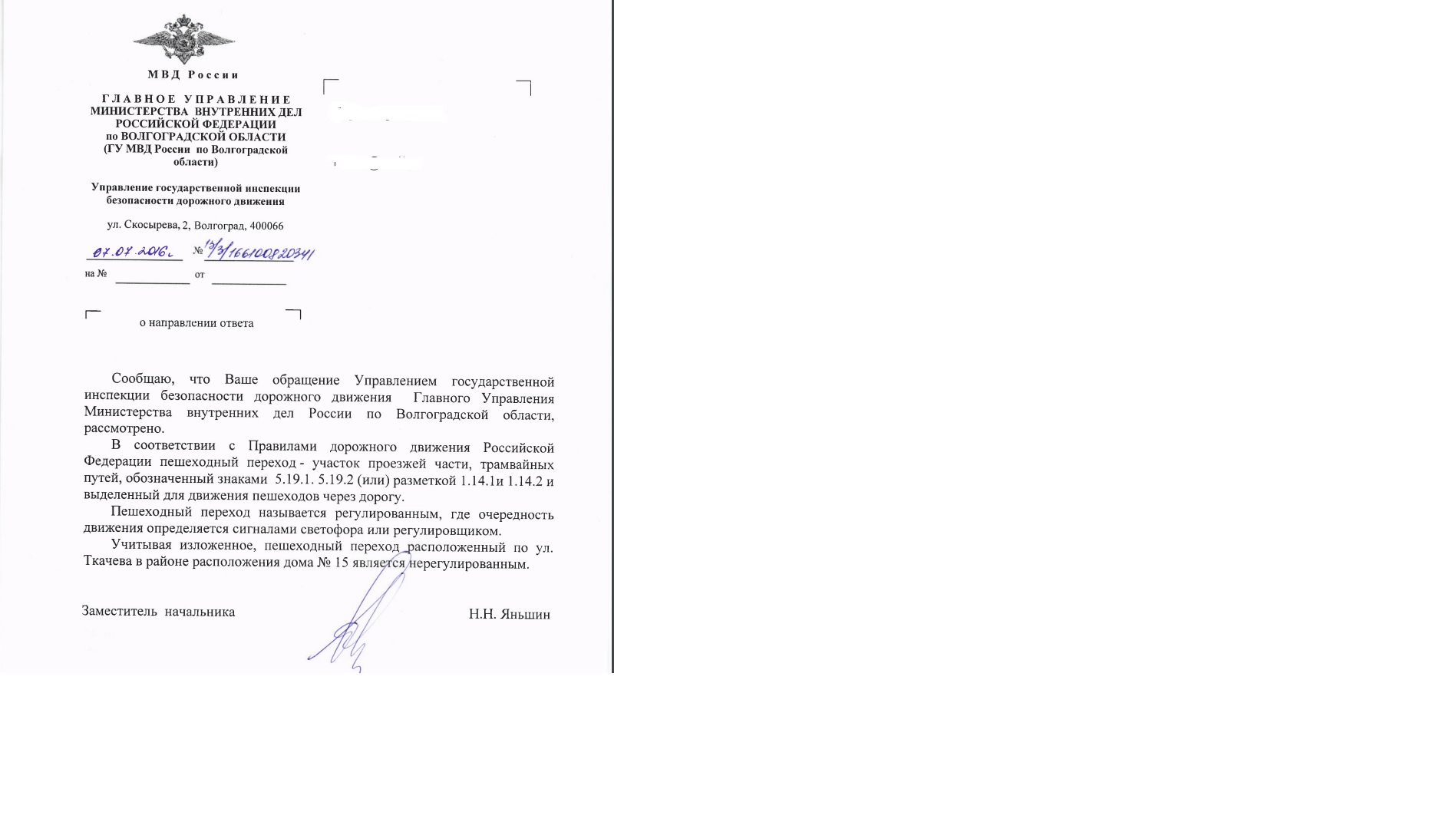 Пешеходный переход на перекрестке Рокоссовского-Ткачева