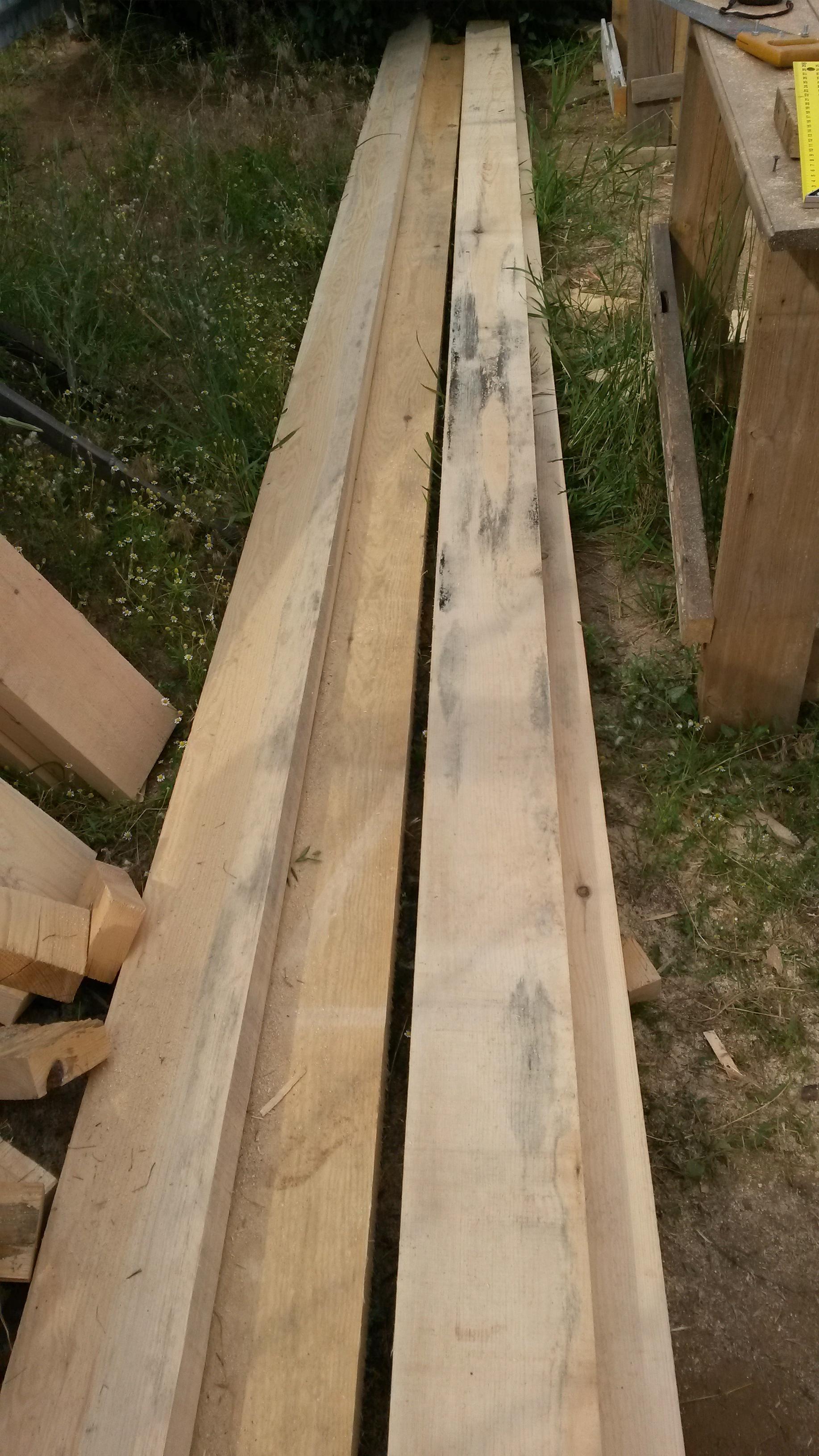 3,14-2,71, На сильно пораженных участках в разрезе на сантиметр вглубь уходит синева эта, очкую как-то Как понять что не предполагаются что будут мокнуть? Ну вот я их поотбеливаю, антисептиком промажу - бац и дождь пошел, опять синева вылезет? Испарения от земли будут какие никакие идти опять благоприятная среда для грибка? убийца, Есть проложки, они даже так и лежали но не совсем правильно. Проложку клал через 2-3 ряда доски, не подрасчитал и дюймовки больше на навес ушло, поэтому пришлось так сделать.