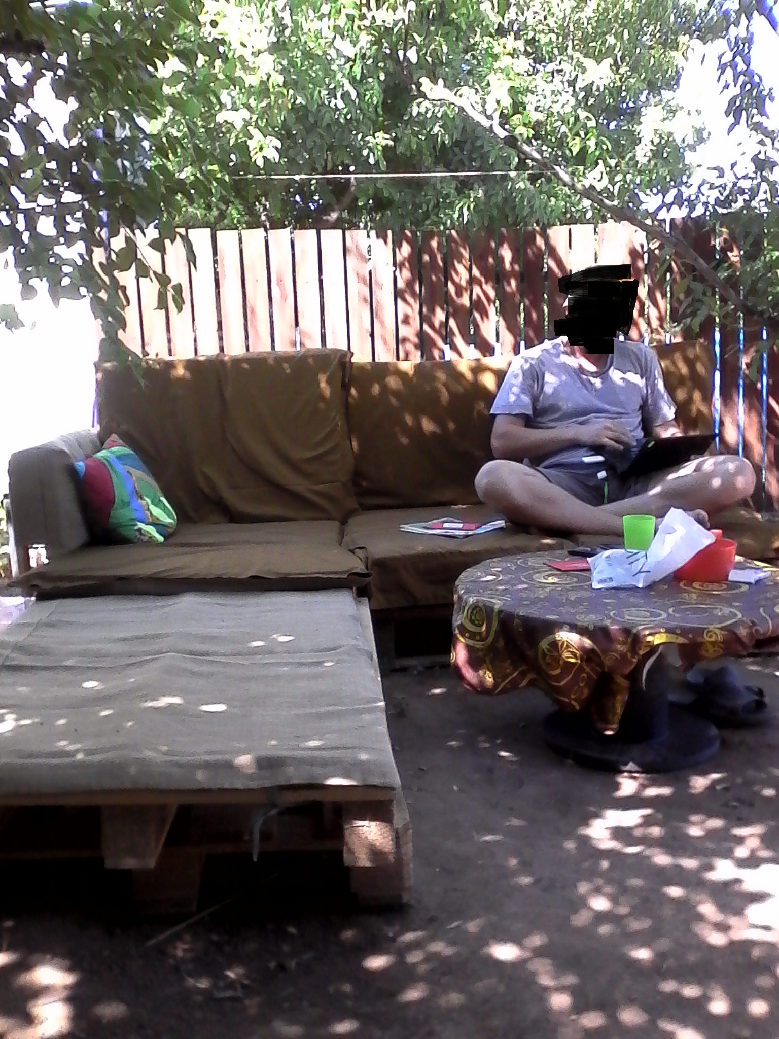 Я толком и не нашла фоток дачи, нету на моем телефоне, вот только то, что в прошлом году муж сдела - зону отдыха около домика на улице и забор (моя идея). Забор это не конец дачи, это визуальное отгорождение зоны отдыха от огорода, ну и веранду фоткала, сделали из нее кухню летнюю бассик тоже имеется