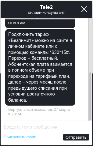 В принципе да После перевода моего номера с архивного тарифа на тариф, абсолютно мне не выгодный пробовал звонить в техподдержку. Но было такое ощущение, что общаюсь с каким-то искусственным полуинтеллектом. Затем написал в чат и обосновал, почему теле2 мне стал не выгоден. Ответа ожидал около часа. Предполагаю, что они посмотрели количество моих разговоров (а в минутах это не много) и предложили один из публичных тарифов со скидкой 50%