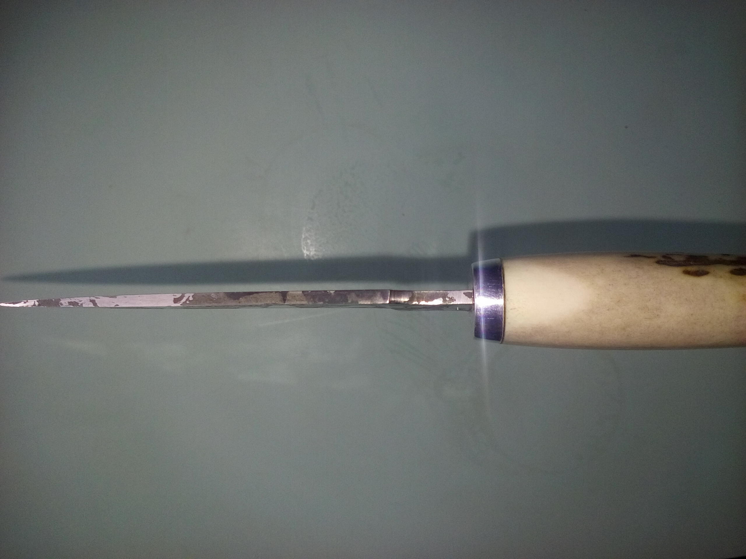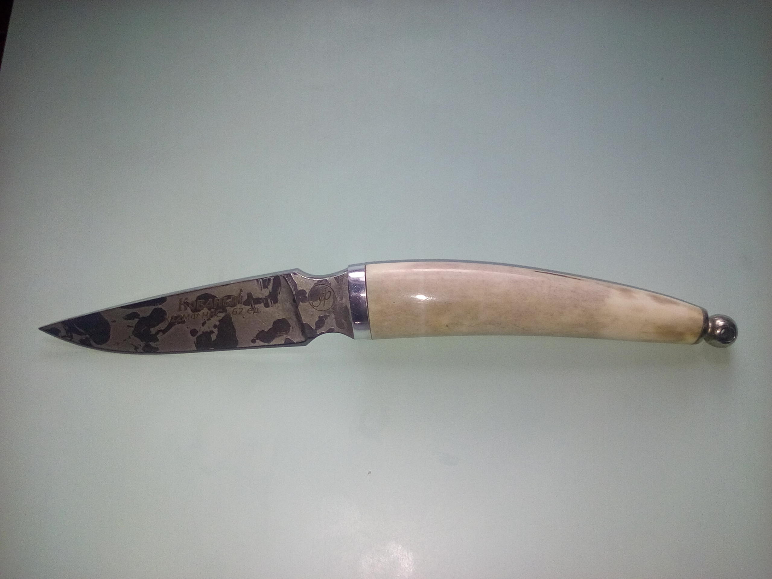Продам кованный нож ручной работы, сталь Х12МФ, рукоятка из рога лося. Нож новый не разу не точился, в комплекте ножны из кожы. Цена 2500р. т.8-9о4-417-о4-63. есть сертификат, нож не является холодным оружием.
