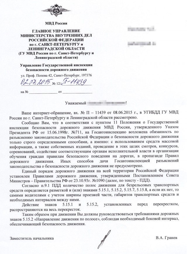 kort, что-то отписка из ГИБДД вообще не понятно о чём... это как так? Если я поворачиваю из крайнего левого в крайний левый, а кто-то из среднего тоже решит повернуть в крайний левый и приедет в меня, это с какого перепугу я буду виноват-то? Абсурд какой-то получается!