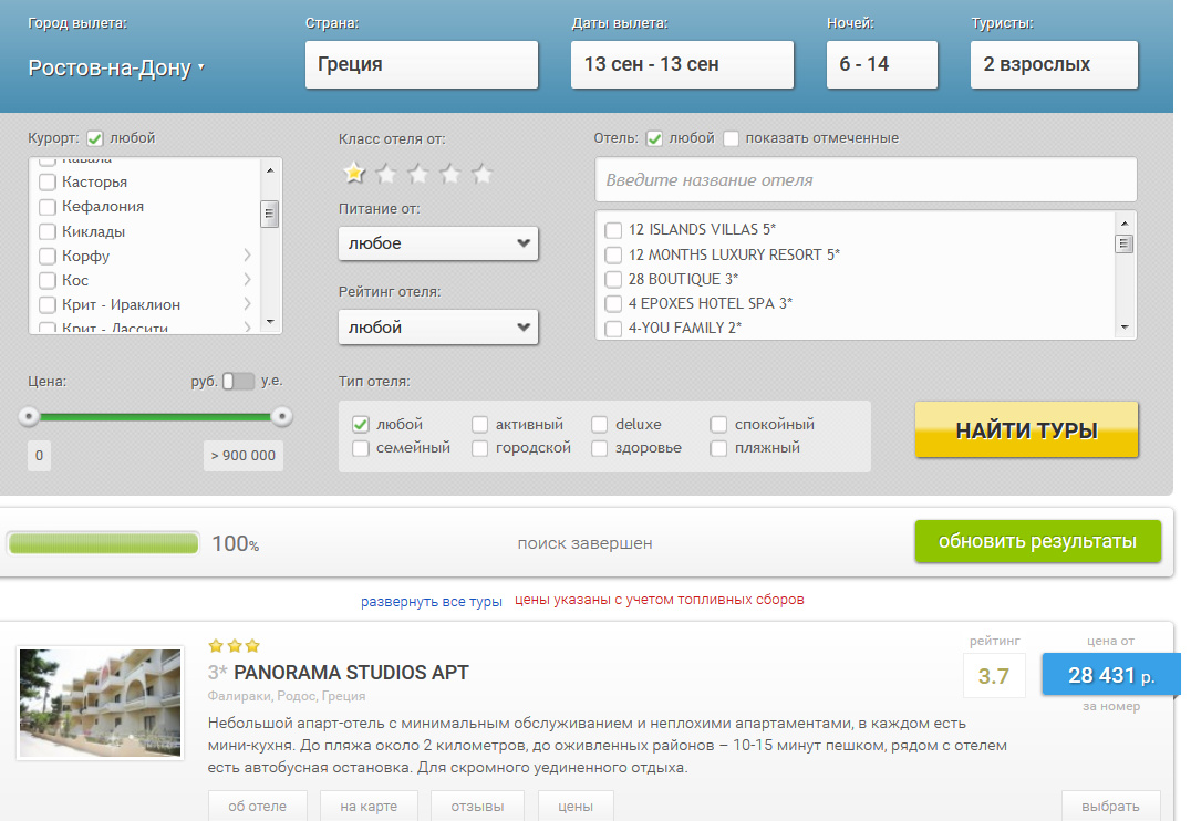 Может кому интересно будет: Родос из Краснодара с 16 сентября на 7 дней - от 30 тысяч на двоих. Родос из Ростова с 13 сентября на 7 дней - от 34 тысяч на двоих Крит из Ростова с 15 сентября на 7 дней - от 35 тысяч на двоих Если бронировать на Травелате и применить промокод, то еще дешевле на 3 тысячи.