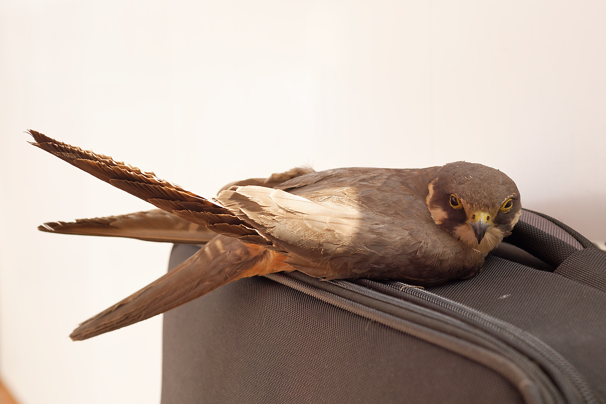 Пернатый хищник. Взлететь не может - одно крыло не работает. Подобрали за Городищем. Сидел посреди дороги (сбитый???). Слава Богу успели оттормозиться и не раскатать его..... Привезли домой.... посадили в клетку....+ вода + еда. Не ест.... Крыло без видимых повреждений.... А дальше что??? Чем его кормить? Куда его пристроить??? Себе оставить - проблематично, так как мы не местные. Буду благодарен за любую помощь и советы.