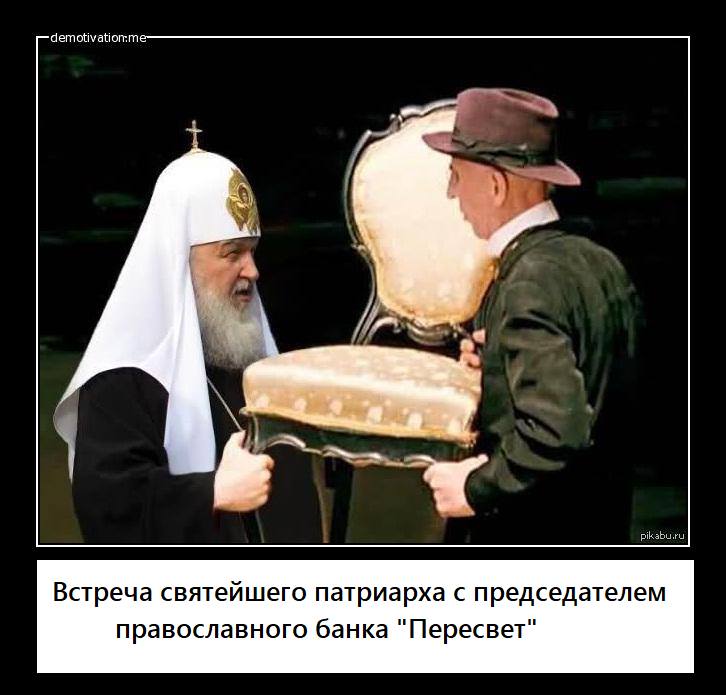 В банк «Пересвет», основным акционером которого является Русская православная церковь (РПЦ), назначена временная администрация сроком на полгода и введен мораторий на удовлетворение требований кредиторов, сообщил ЦБ - https://www.cbr.ru/press/pr.aspx?file=21102016_094334ik2016-10-21T09_42_24.htm В банке «Пересвет», основным акционером которого является Русская православная церковь (РПЦ) и в котором с 21 октября ЦБ ввел временную администрацию, хранилось около трети средств администрации РПЦ. Об этом сообщает «Интерфакс» со ссылкой на источник в среде акционеров банка. Собеседник рассказал, что в «Пересвете» располагался основной счет Московской патриархии. Всего, по его словам, в банке хранилось около трети всех средств администрации РПЦ. О судьбе хранившихся средств, были ли они выведены, источник агентства не знает. При этом представитель пресс-службы банка говорил РБК, что у кредитной организации нет проблем с ликвидностью, а повышенный спрос на снятие наличных, который наблюдают в «Пересвете», связан с появлением сообщений в СМИ об исчезновении председателя правления банка Александра Швеца. Об исчезновении банкира 14 октября сообщил телеканал «Дождь» со ссылкой на источники. «Пересвет» после этого опубликовал официальное заявление, в котором пояснил, что Швец находится в Москве, но проходит курс лечения, поэтому не может осуществлять свои полномочия.