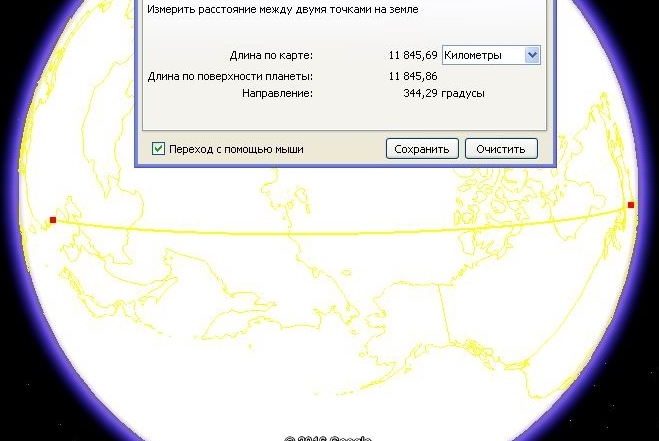 А теперь к примеру возьмём пару других точек - на западе и востоке Китая. Расстояние получается гораздо больше.