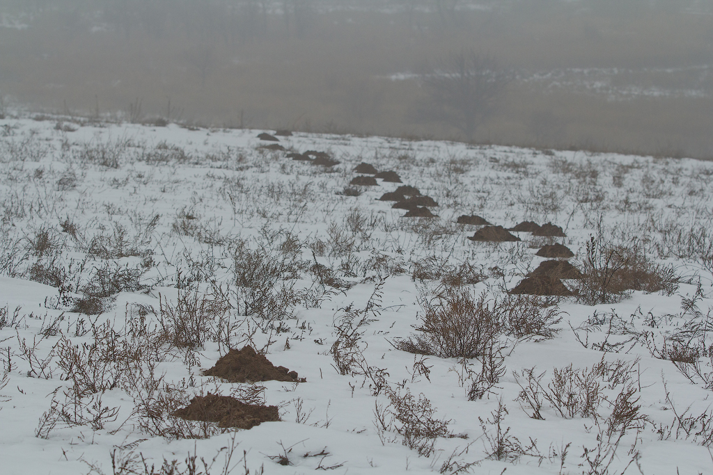 В день съемок был туман, но в целом замечательная погода. Можно было и кротов покараулить - земля в лунках свежая.
