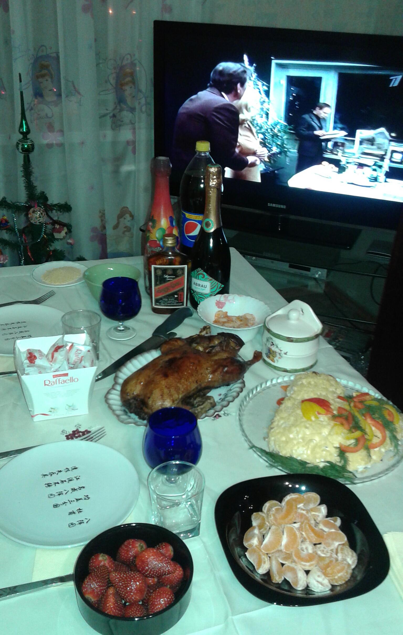 Залетный гость, ребенок не ест салаты, от слова совсем. Из представленных фруктов-съели всё, утку тоже съели. Шампанское вскрыла 02.01, салат съели 01.01. В новогоднюю ночь с 01-30 до 04-00 гуляли у Химика. 01.01 катались с друзьями с горки, потом у нас чаи гоняли. Ну, не обжираемся мы, иначе досуг проводим.