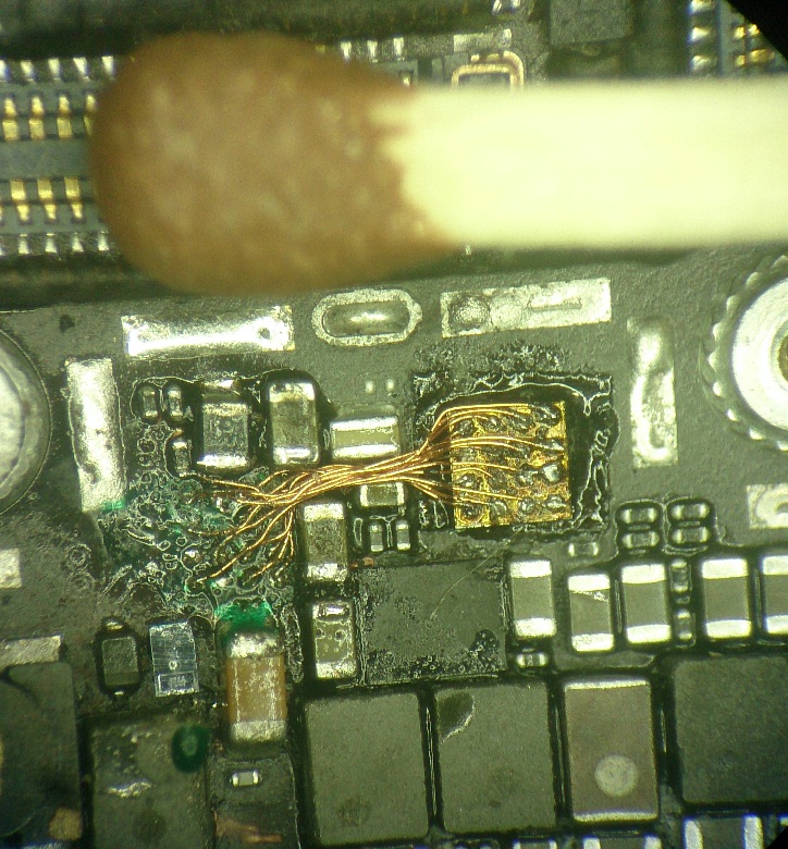 Ну может у человека не было фена, трафаретов и прочего нужного для этого дела, а твердые руки и паяльник с тонким жалом был, и уйма свободного времени Я насмотрелся на подобное, уже ничего не удивляет, имел отношение к сфере ремонта мобильников ещё когда они не стали все однообразными лопатами. Видел как-то ч/б самсунг раскладушку не помню какой модели, вместо шлейфа было примерно то же самое что на фото, и оно даже работало какое-то время