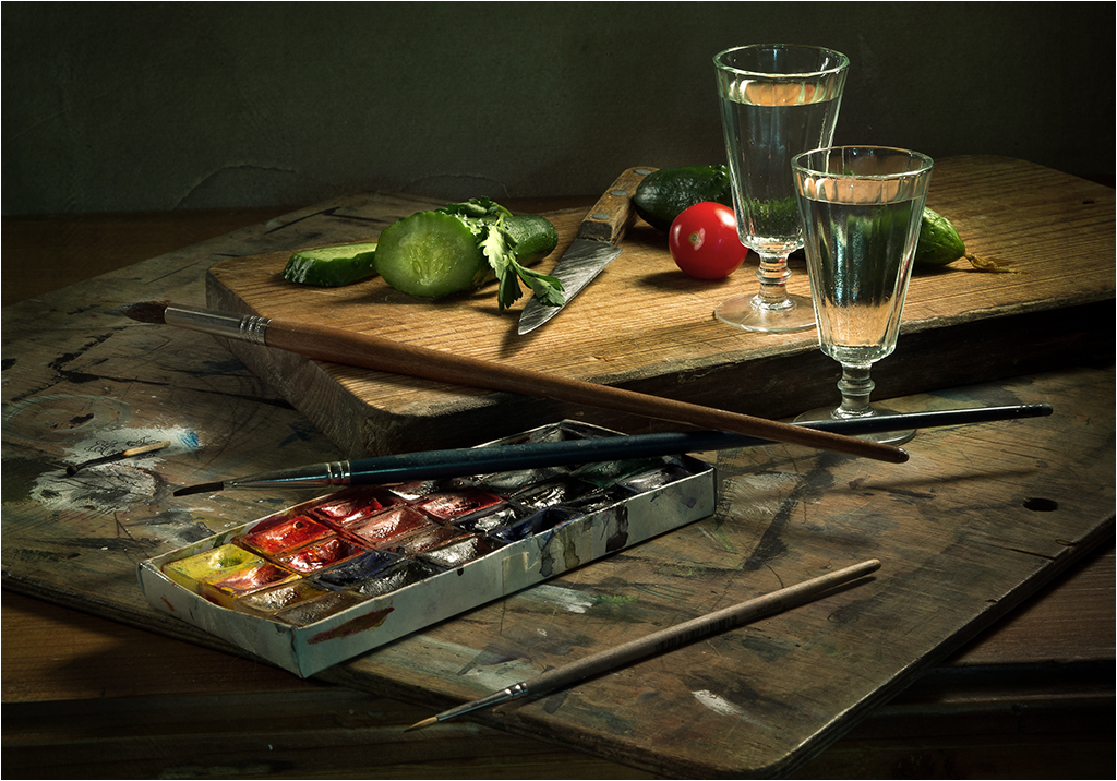 Этюд с зубчиком чеснока и корочкой хлеба.