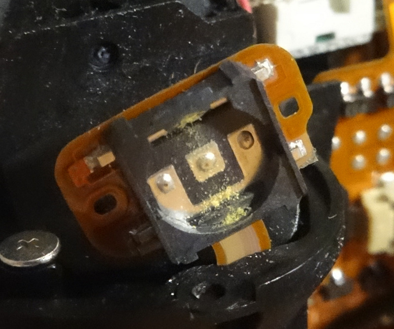 Чинил кнопку сегодня. Забегая вперёд, скажу, что починил, притом без особого труда. Оказалось, что она, по сути, вечная. Вовсе ничего там не продавливается, как многие думают, а просто грязь скапливается. Впрочем, это является конструктивным недостатком. Может, даже специально так задумано, чтоб люди ходили в сервис. Ломаться там совершенно нечему, ремонтируется достаточно легко, тем не менее, в сервисе это чинят заменой, а не ремонтом, причём, скорее всего, целиком в виде узла с колесом и берут с вас за это сколько-то тыров. Нашёл три способа. 1) Самый простой и, наверное, малёха опасный: вылить ложку спирта в батарейный отсек, при этом наклонить аппарат так, чтобы спирт попал только на кнопку. Я побоялся, что спирт попадёт куда-то не туда и чего-нибудь испортит, например, дисплей, или клей от скотча растечётся. 2) Разобрать аппарат и промыть кнопку на весу. Хотел так и делать, но нашёл видео и сделал более качественно по варианту №3 3) Всё на этих видео (подчёркивание добавил, чтоб они в текст не вставились) _https://youtu.be/CAWGScQeC5g и помедленнее _https://youtu.be/d6v9b2qWfIs _https://youtu.be/rTUk8KGMG54 _https://youtu.be/Bkbo5QDaWB4 Размер видео, к сожалению, 360, и фокус временами пляшет, но уж чем богаты. Для ремонта нужны только крестовая отвёртка, чистый спирт (изопропиловый 99,7% продаётся на любом углу), вата или чистая тряпочка, ватные палочки и плоская отвёртка или нож. Пинцет не помешает, но можно и без него, особенно если ногти как пинцет. Мужик там ещё ластиком контакты немножко трёт. Я тоже потёр слегка. Важные моменты: Кнопку открыть сложновато. Держать неудобно, и если отвёртка/нож соскочит, то можно порвать шлейф. Я открыл не совсем удачно, и у меня все три детали вылетели, пришлось долго видео смотреть, чтоб понять, как располагались пластины. Оказалось, что они просто лежали одна на другой, как автомобильные рессоры, выпуклостями кверху. Отвёртка должна быть очень качественной, из хорошей стали и с острыми гранями!!! Моя когда-то была неплохая, но, видать, уже затупилась, и я пару шлицов повредил. Занимайтесь ремонтом на большом и светлом столе, желательно с бортиками, чтоб винты не могли укатиться. Лучше, чтобы стол был покрыт чем-то мягким, чтоб винты не подпрыгивали, если упадут. Наверное, идеальное покрытие - антистатический линолеум, но и скатерть/простыня тоже подойдёт. ОБЯЗАТЕЛЬНО раскладывайте винты в том же порядке, как их откручивали!!! Не валите, как я, их в одну кучу. Еле, блин, разгрёб, какой откуда На всякий случай напомню, что перед наклеиванием резиновых накладок обратно, корпус надо обезжирить. Тут-то и пригодятся вата или тряпочка. Если наловчиться, то можно всю процедуру делать минут за 15-20. У меня на всё ушло примерно 4 часа, из них часа два искал и изучал инструкции, час или больше сортировал винты, чтобы скрутить обратно Завтра полезу во второй аппарат, там то же самое. Хотелось бы верить, что за час управлюсь Такой вот кошмар был внутри кнопки. Могу предположить, что это опилки от текстолита.