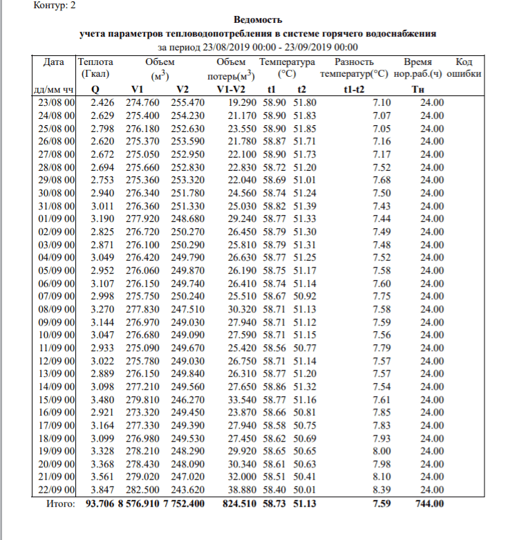 Возник вопрос: В доме ИТП после его введения стал конский тариф на гор воду - 300 руб за куб Анализирую их расчеты и вот что непонятно: в формуле есть количество ХВС для подогрева ГВС Как это количество расчитывается? В доме есть ОДПУ на горячую воду, показания есть в инете Количество теплоты сходится с данными в платежке Также там есть пункт "объем потерь", то есть разница между подачей и обраткой в кубах. Это же и будет количество ХВС для ГВС? В платежке эта цифра уменьшена почти в два раза и так каждый месяц То есть, если в формулу подставить данные "объем потерь" с ОДПУ, то цена за куб будет 170 руб (что соответствует истине) Прилагаю платежку и ведомость с ОДПУ горячей воды То есть Гкал они берут с 824 кубов, но потом их раскидивают на 582 куба. Откуда 582 куба взялись - никто не знает. Мы обращались в УК, но "нет расчетчицы на месте" или присылают письменный ответ, что вот вам формула, вот цифры, все правильно. Но откуда берут ХВС для ГВС, они не поясняют