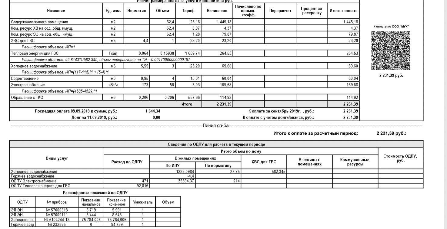 Показания передавал, в ЛК стоит объем 0.001 Немного почитал правила и вот что: 130.647 - это, как я понял, сумма объемов тепловой энергии, потребленной во всех жилых помещениях и нежилых помещениях Но чтобы ее рассчитать, нужно знать сумму площадей жилых помещений и нежилых помещений , оборудованных ИПУ А этого в платежке я не нашел Интересно, должна ли все цифры ук расшифровывать?