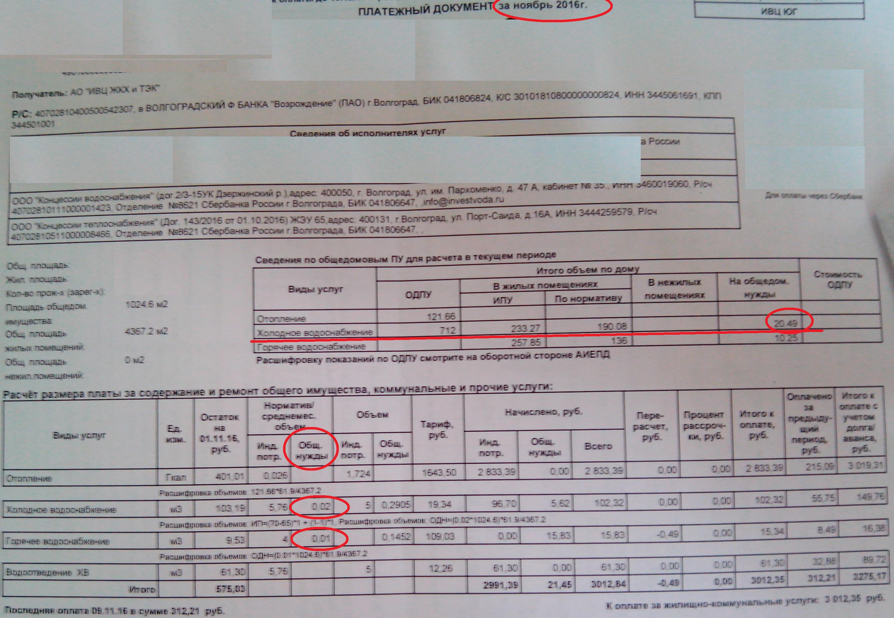 А заглянуть в свою платёжку не суждено? Вот моя платёжка, прошлогодняя (видите вверху ноябрь 2016), то есть период, в котором жильцы, по-вашему, якобы, ПОЛНОСТЬЮ оплачивали разницу. Теперь смотрим ниже ОДПУ по холодной воде за месяц = 712 м3. Начислено: - по щёчикам - 233,27 м3, - по нормативу - 190,8 м3, а на общие нужды - 20,49 м3. Теперь сложим эти числа 233,27+190,8+20,49 = 444,56 м3. А теперь сминусуем 712 - 444,56 = 267,44 м3 А теперь скажите КТО украл эти 267,44 м3 и КТО оплатил эти 267,44 м3? У нас эту разницу оплачивает УК. Я, как видите, оплатил на общедомовые нужды холодной воды всего 0,02 м3. Ну, а если в вашем доме эту разницу оплачивают жильцы, так а не быть терпилами.