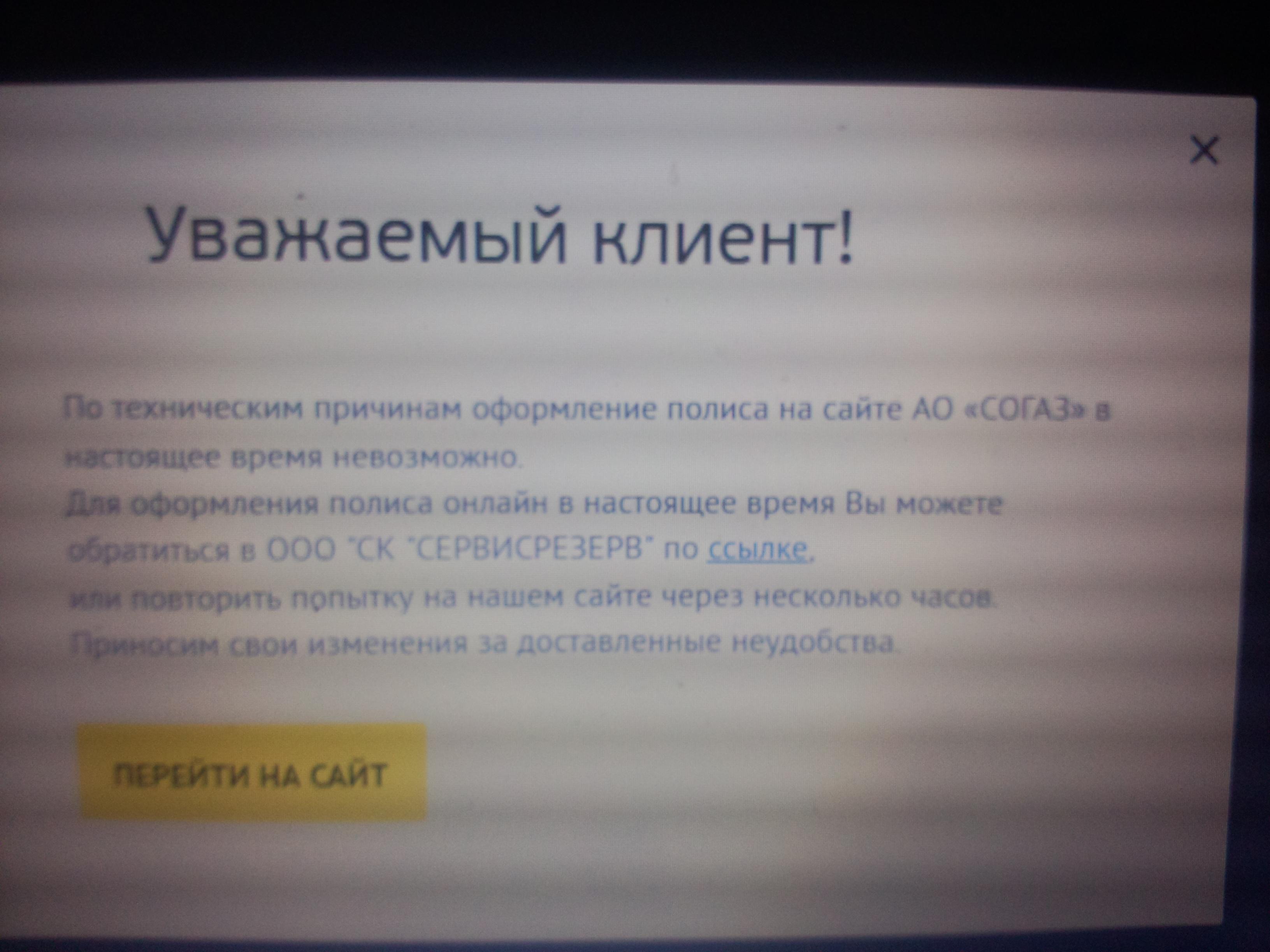 Счастливчик... на протяжении последних 2-х лет страховал у них 6-8 машин ежегодно (2-3 своих, 2 - тестя, 2-3 - брата)... все 2 года - без единого ДТП (тьфу 3 раза)... в общем денег занёс им более чем дофига... вчера раза 3-4 в течении дня пытался оформить у них ЕОСАГО на "Ниву"... каждый раз - херушки (на фото)...:frustrate :frustrate :frustrate В общем "СОГАЗ" - . P.S. Большое спасибо, вышеотписавшимся про "Альфастрахование"... застрахерил "Ниву" со 2-го раза...