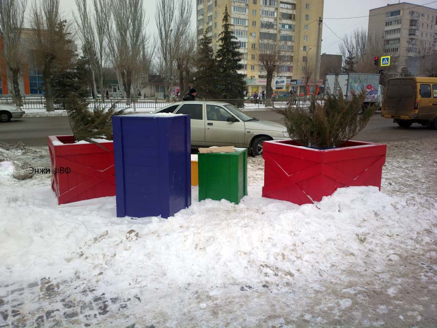 Я думал это мусорные баки покрасили. ну там знаете же, что после нг все елки выкидывают туда.