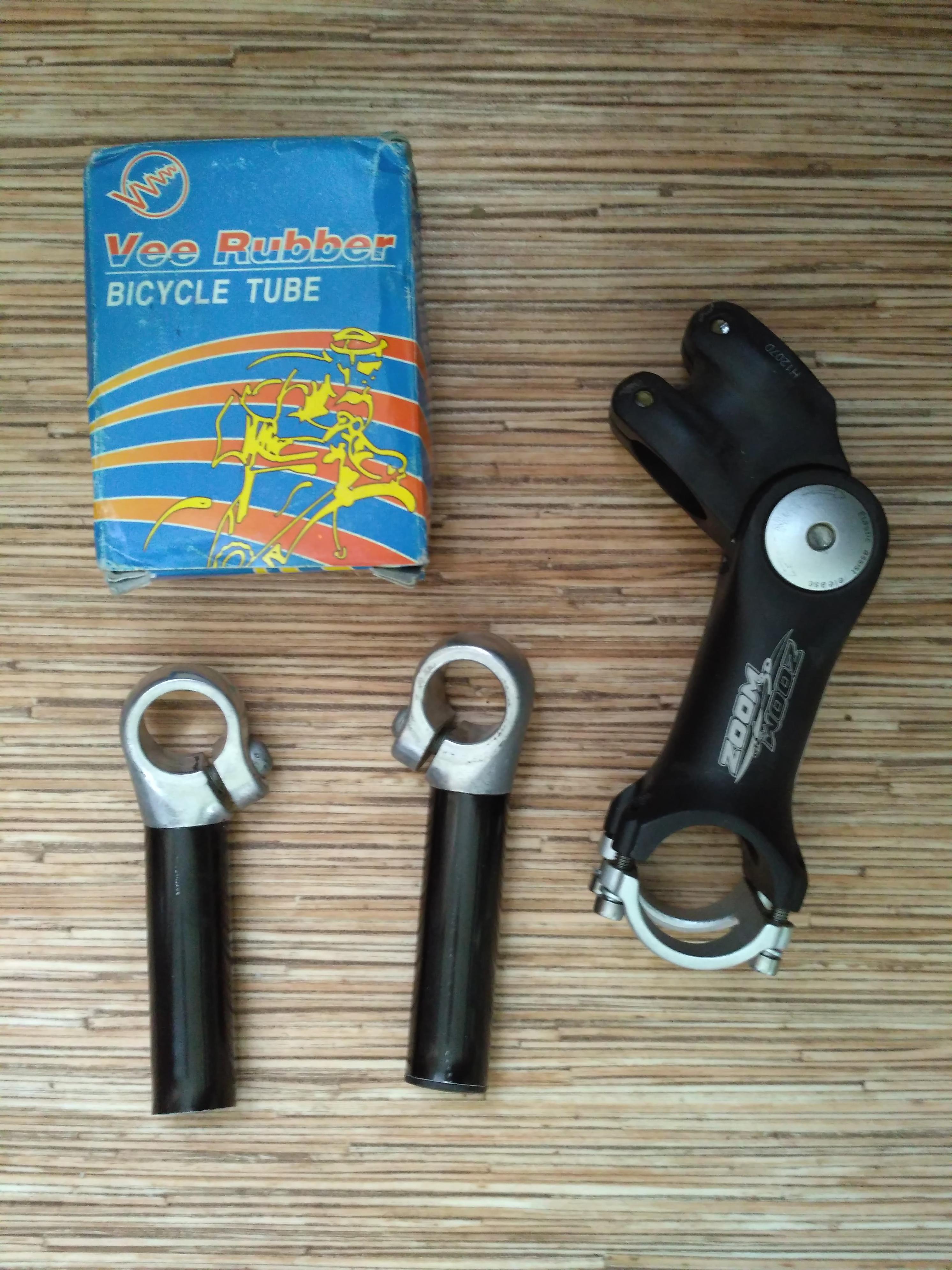 Разбирал шкаф дома и обнаружил это добро. Рога, вынос и камера 26x1.75/2.125. Вынос немного поломан, когда закручивал, сорвал резьбу. Думаю можно поставить вместо шайбы с резьбой гайку и всё будет хорошо. Меняю всё на килограмм гречки. Забирать в центральном районе по вечерам.