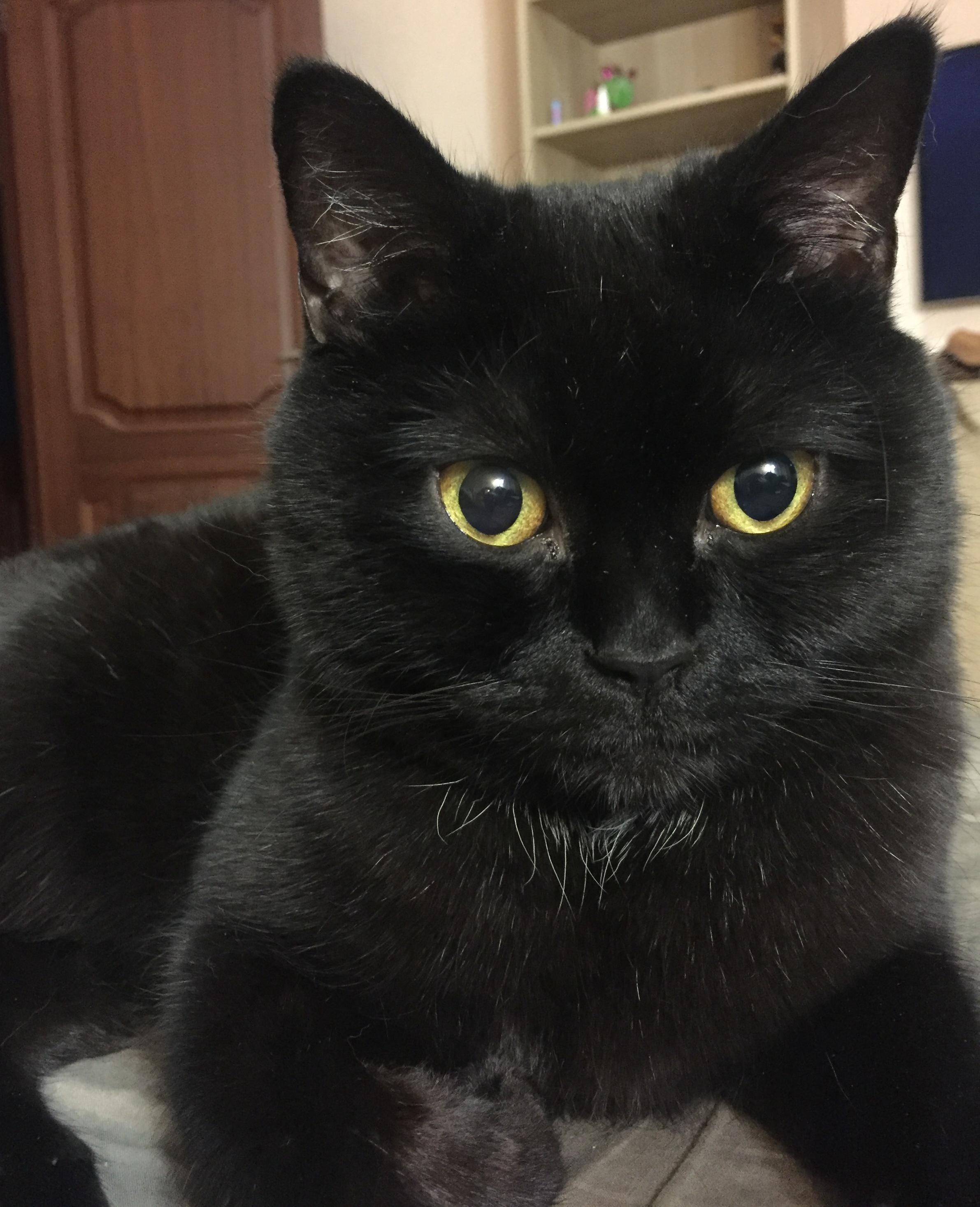 По опыту, черные коты и кошки очень ласковые мурчалки Учитывая размеры мордахи кот крупный должен быть.