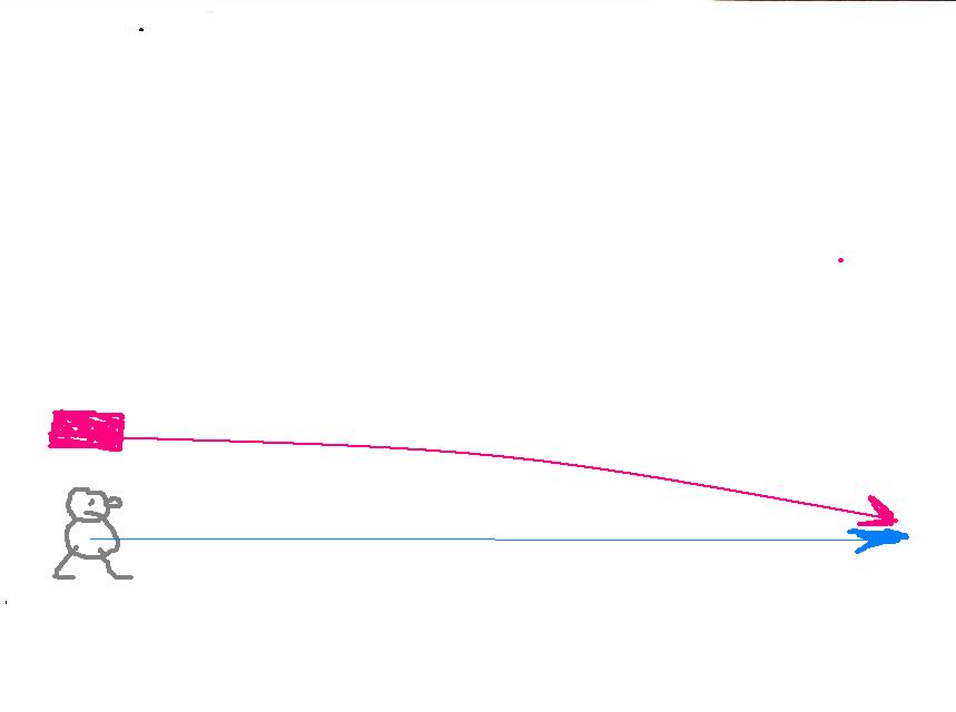 Ну не нравится мячик,пускай будет кирпич и голова прохожего.Кирпич падает на голову прохожему.Так лучше?На рис. показал траектории кирпича и прохожего.