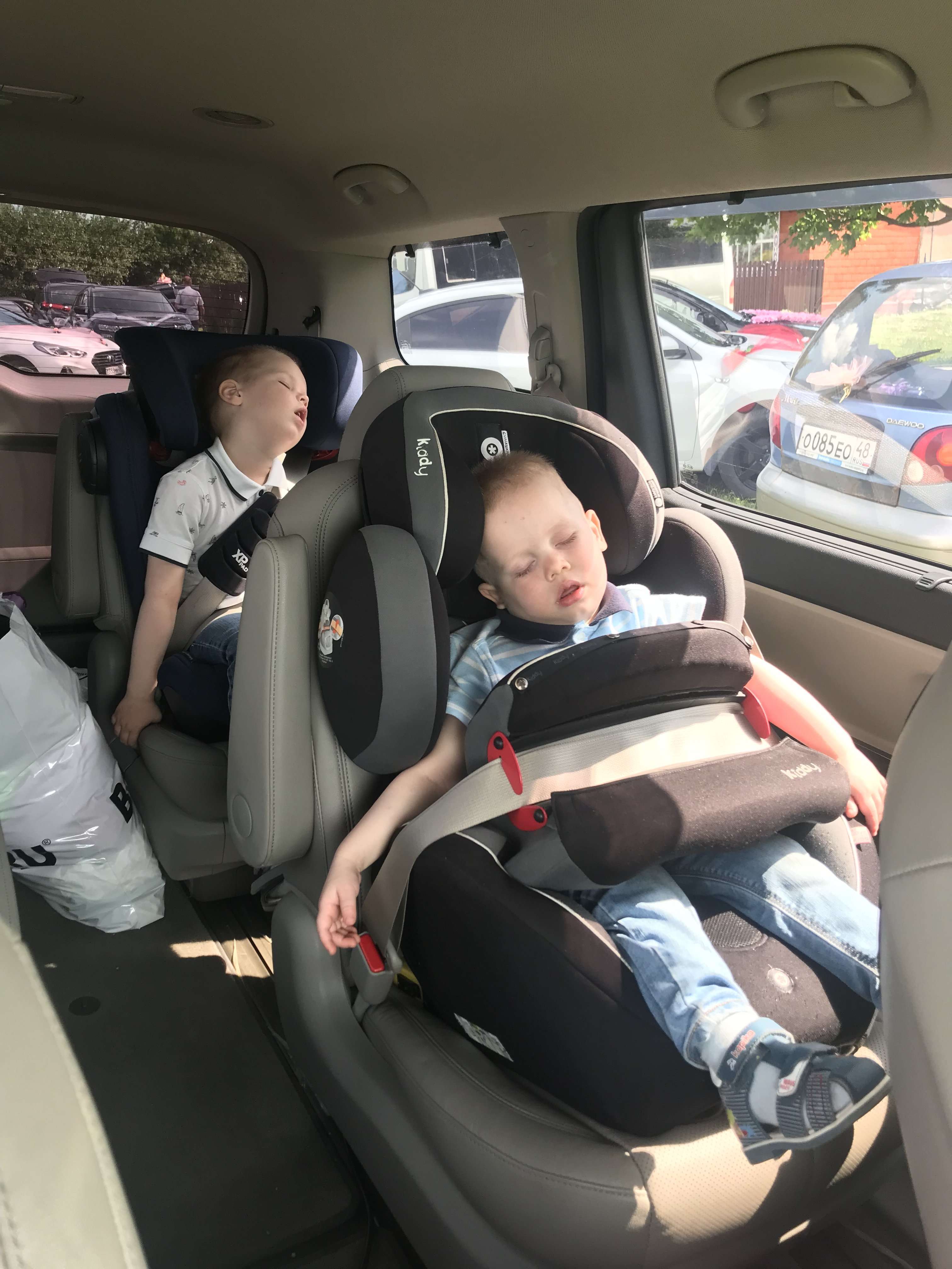 Наковыряла вот фото, спящих детей)), все в своих креслах отдельно, очень удобно конечно. За год пользовались и 7-8-9 местами (это диван в багажнике). Ездить конечно очень комфортно в этом авто.