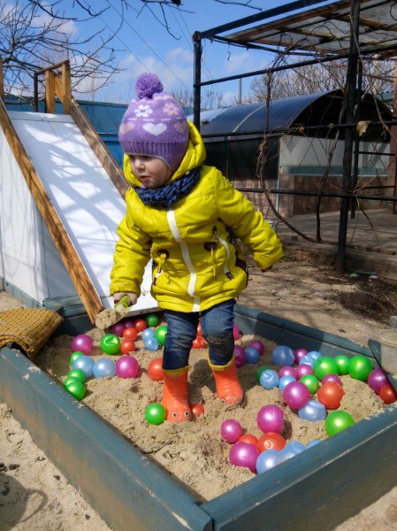 Какой же у мня крутой папа! Сделал все сам: горку с домиком, ящиком-сиденьем и откидным столиком, песочницу, качели и плетеный домик из ивы!!! Горка из бруса, покрыта обычными пластиковыми панелями. Третий год полет нормальный! Блин, сколько раньше мужики делали своими руками: дома сами строили, бани, мебель мастерили дома...