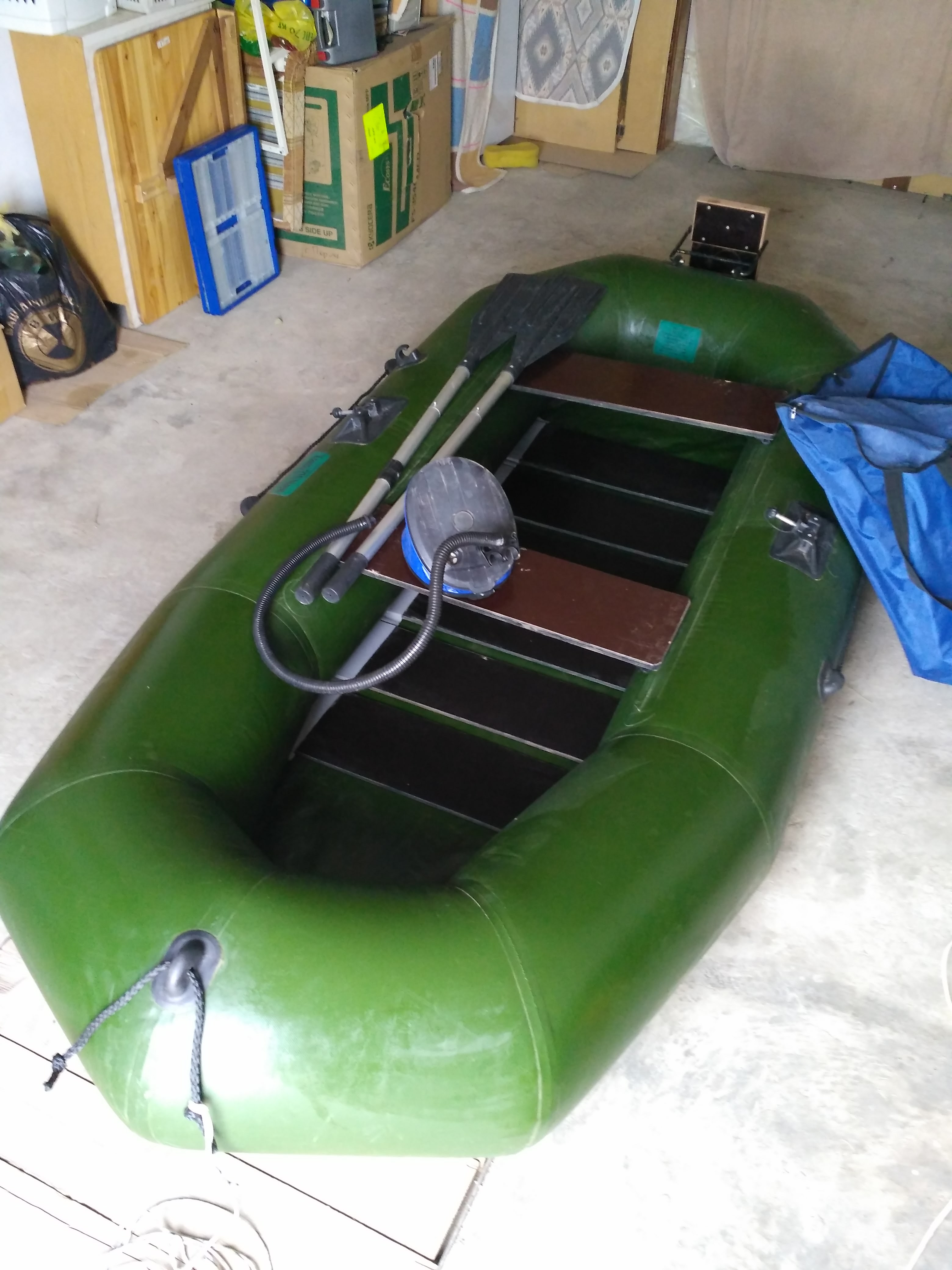 Лодка Кама-270N c навесным транецем Длина 2700 ширина 1300 диаметр баллона 360 грузоподъемность 220 количество отсеков 2 вес в комплекте 17.5 мощность мотора л\с 2,5л\с весла алюминиевые складные 2шт реечная слань желаемая цена 9000 р. готов выслушать предложения в теме