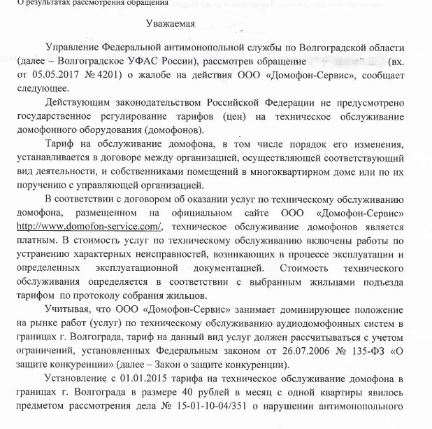 Lla, не вводите людей в заблуждение. это вам низшее звено домофонной пищевой цепочки отказало -- приходящий мастер. а в домофон-сервис вы не ездили и заявлений не писали. когда получите оф. письменный отказ от компании в предоставлении кода, тогда и разговор будем вести. Dir, не узнавали, сколько обслуживание домофона с метра выйдет? сейчас в домофон-сервис каждая квартира платит 40 р/мес. грабеж средь бела дня думается, как раз 40 рэ у 4-комнатных и получится (если не меньше), а владельцы других квартир вам спасибо скажут.