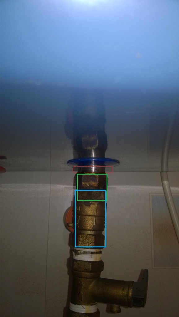 Может кто подскажет, где купить в Влг сабж для бойлера АТТ 50 (плоский). Тены, прокладки, аноды - это все есть и в инете и в магазинах, а вот патрубка этого не встречалось. Конструктивная особенность состоит в том, что патрубок самого бака (красный прямоугольник) - выполнен из нержи и имеет очень мелкий шаг резьбы. Искомый переходник (зеленый прямоугольник) навинчивается на него (имея тот же мелкий шаг внутренней резьбы). Далее навинчивается кран (синий прямоугольник). На кране и на внешней резьбе переходник шаг резьбы уже более крупный. На переходнике длина участка с внешней резьбой под кран, всего где то сантиметр и того уже стало меньше (последний раз когда разбирали/промывали бак, стало ясно, что в следующий раз, собрать на этом же переходнике уже не получится). Металл переходника подвержен коррозии (потому на фото вся конструкция отображается несколько закошенной, по причине того, что часть стенки с внешней резьбой съело со временем). Еще одна особенность этого переходника/патрубка в том, что через него проходит короткая латунная трубка (подача холодной воды), вроде бы припаянная внутри этого патрубка (на фото с трубками - тот, который короткий). При разборе, трубка не выпадает, сидит в патрубке крепко. Бойлеру лет 10, даже при наличии коррозии, меня этот период разрушения вполне устраивает (к тому же конкретно этот мог разрушиться по причине того, что бак не промывали лет 5 и пока тен не навернулся 2 года назад, туда не лазили - соот-но не следили за состоянием анода и патрубок банально мог стать участником гальванической пары, что в итоге и спровоцировало разрушение). На последнем фото именно мой случай точно такого же патрубка. Собственно где-бы такой заводской найти, что б не колхозить. З.Ы. Возможно нужно переместить тему в Ремонт и домоводство...