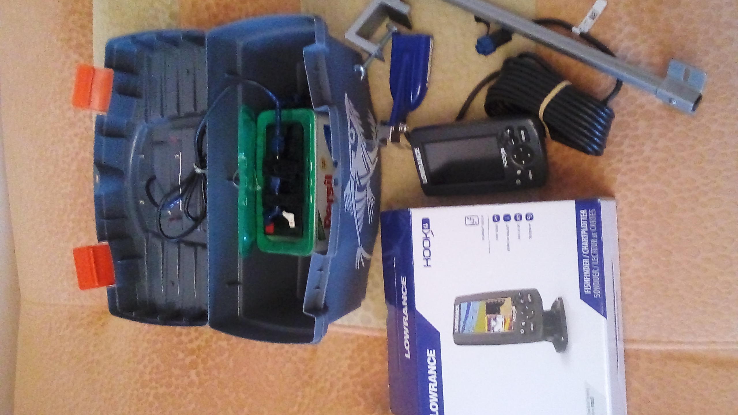 Эхолот-карт плоттер Lowrance HOOK4 новый на воде не был, с держателем эхолота , ящиком и аккумулятором цена 18500 рублей. Технические характеристики Размеры: 9,6 см х 5,6 см х 16,8 (18,9 с подставкой) см Размер дисплея: диагональ 10,92 см. (4.3") Разрешение дисплея: 480 x 272 пикселей Тип дисплея: 16-bit color TFT Подсветка дисплея: LED Водонепроницаемость: да (IPX7) Эхолот Частота: 455/800 kHz (DownScan Imaging™), Med, High (CHIRP), 83kHz/200kHz Тип излучателя: Multiple Selections Lowrance and Airmar Мощность: 500 Вт RMS Диапазон напряжения: 12 В пост. тока (10 - 17 В пост. тока min-max) Максимальная глубина: DownScan Imaging™: Макс. 300 ft / 91 м @ 455 KHz CHIRP сонар Высокий диапазон/200 kHz: 1000 ft / 305 м CHIRP сонар Средний диапазон/83 kHz: 1000 ft / 305 м Звуковая сигнализация о глубине Да Звуковая сигнализация о мели Да Отображение температуры воды Да GPS-навигация Маршрутные точки/Избранное/ Места 3000 Маршруты 100 Тип приемника/антенна 16 канальный GPS+WAAS+EGNOS+MSAS / внутренняя Запись траектории 100 треков, до 10 000 точек/трек Базовая карта Да Поддержка картографии Navionics® Gold, C-Map Max-N тел:89053323107