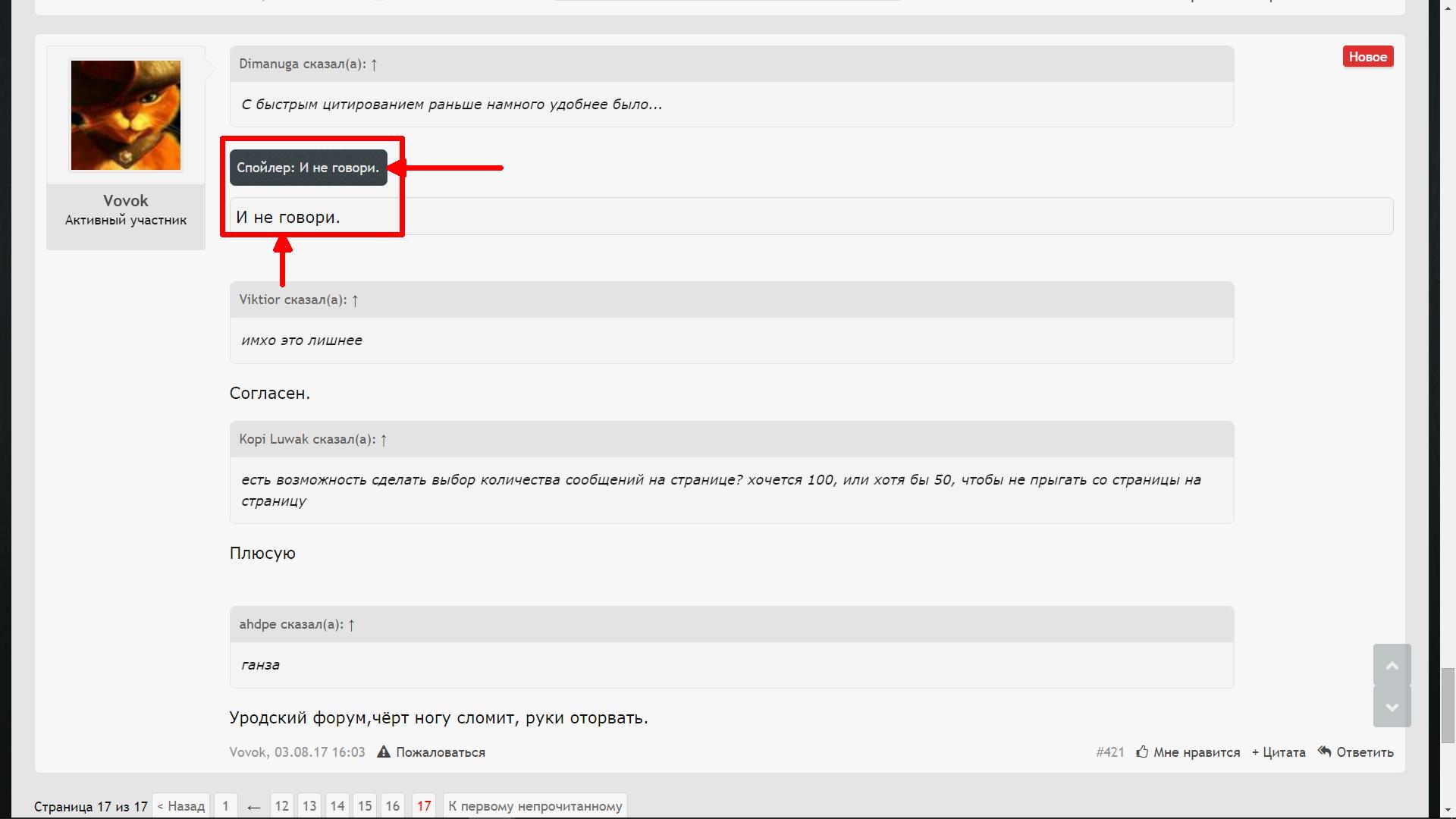 Вот так спойлер! Ага, теперь понятно, Vovok просто заголовок ввёл. Образец правильного спойлера: Спойлер Текст спойлера