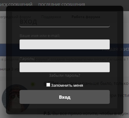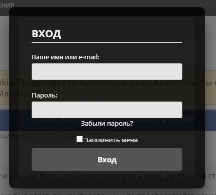 Окно Вход нужно допилить, черные шрифты поверх серого фона хотя бы так Код: .xenOverlay #pageLogin .heading.h1 { font-size: 20px; color: rgb(238, 238, 238); background: rgba(210, 189, 189, 0); padding-left: 0; border-bottom-color: rgb(223, 223, 223); border-radius: 0; text-transform: uppercase; } .xenOverlay #pageLogin dt { color: rgb(255, 255, 255); } ну и сразу перейти на https