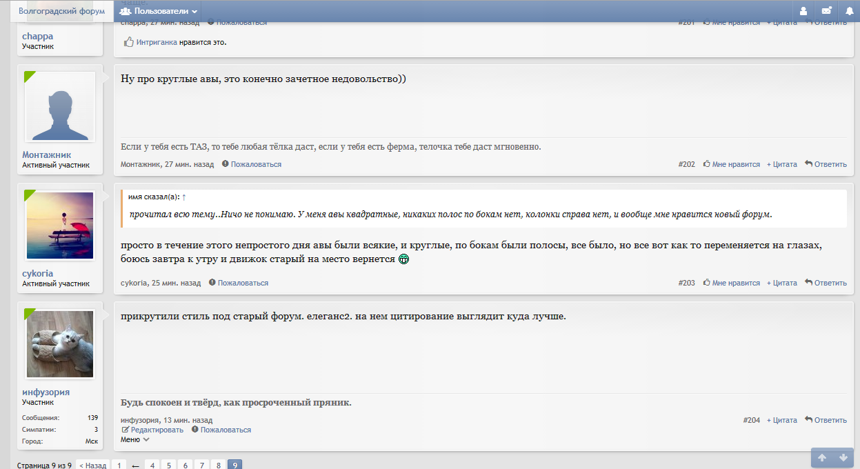 Да никто ведь не говорил, что ничего не будет корректироваться и останется, как есть. Есть кучка неадекватов, которые считают себя пупами, и не читают, что им отвечают. Потихоньку все дошлифуется так, что ВФ и далее будет лучшим форумом, только теперь еще современным и отвечающим всем последним и модным веб-тенденциям!