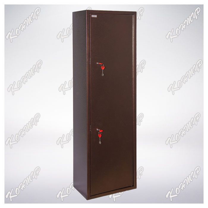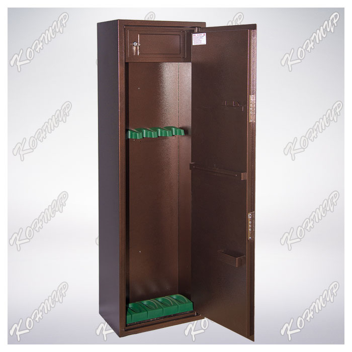 Оружейный шкаф КО-039т. Новый в упаковке. Высота 1400мм Ширина 430мм Глубина 280мм Масса — не более 37 кг Наличие отсека ограниченного доступа Максимальное количество хранимого оружия — 5. В двери – 8-ми сувальдный замок «ПРО САМ» (Россия) — 2 шт Шкаф предназначен для хранения и ограничения несанкционированного доступа к гражданскому и служебному оружию, боеприпасам и принадлежностям. Шкафы представляют собой цельносварную металлическую конструкцию, соединение элементов которой выполнены методом сварки сплошным швом по контуру прилегания элементов. Корпус шкафа изготовлен из стального листа толщиной 1,4 мм, полотно двери — из листа толщиной 2 мм. Полотно двери изнутри усилено панелью коробчатого сечения из стального листа толщиной 0,8 мм, на которой располагаются дополнительные элементы, такие как: шомполодержатель, скоба, масленка. В верхней части шкафа «КО-039т» располагается отсек ограниченного доступа (трейзер), запираемый на замок «почтового» типа, а остальное пространство шкафа занимают 5 комплектов пластиковых ложементов (верхний и нижний), предназначенных для упорядоченной укладки оружия и позволяющие сберечь оружие от царапин и потертостей. На задней стенке шкафа предусмотрены 2 отверстия Ø 7 мм для возможности крепления его к стене. В шкафу установлено два 8-ми сувальдных замка фирмы «ПРО САМ» (Россия) с классом устойчивости 2 по ГОСТ 5089-2003. Петли – внутренние. Покрытие шкафа – порошковое полимерное, цвет в стандартном исполнении — «Медный антик». 7500 руб. ЛС или skype artemlazy.