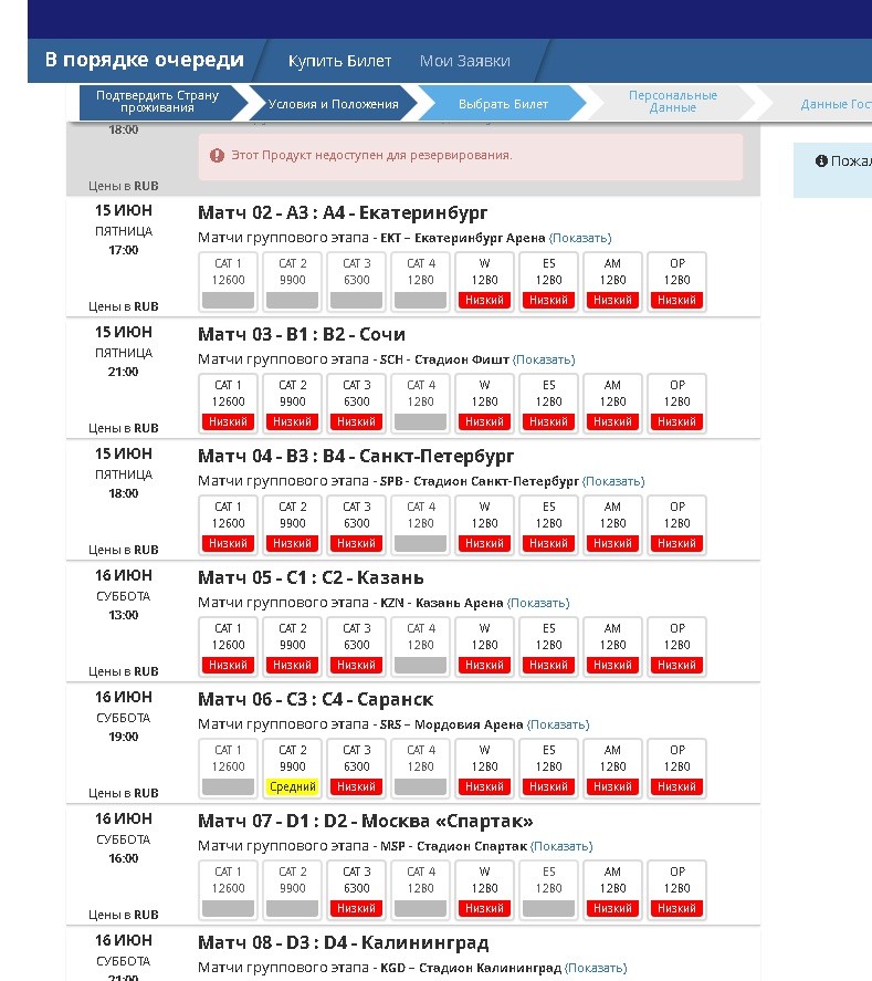 короче, я тоже зашла. недоступна 4-я категория. причем практически на всех стадионах. видимо они ее придержали до окончания второй жеребьевки.