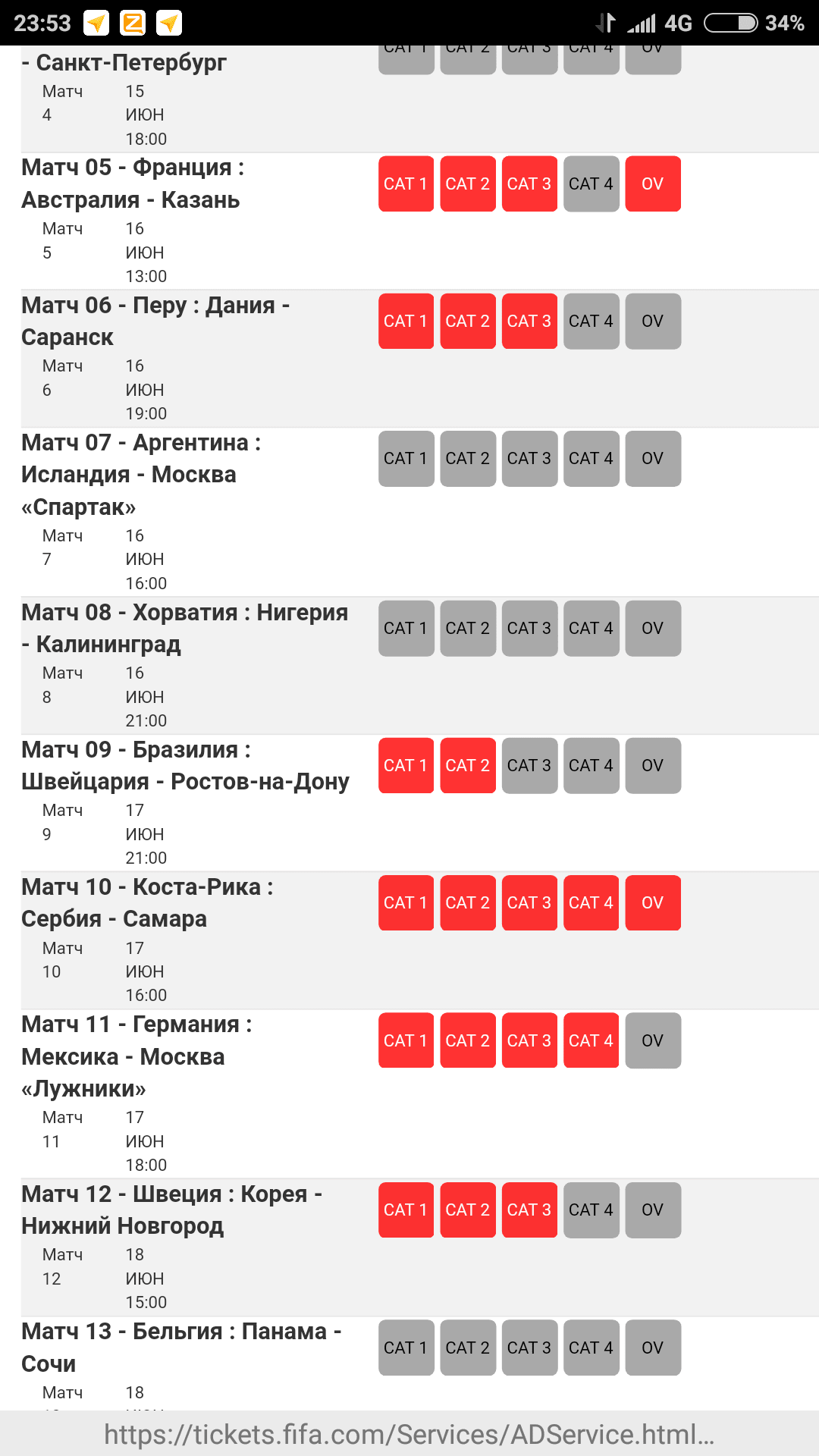 Ну может я что-то путаю. О_О. Могет быть... если команды из нашей группы РнД с Волго перепутал. Точно видел 4-ю на сегодняшнюю Франция-Австралия, один из матчей Перу в Сочи и 1/8 финала в Нижнем.